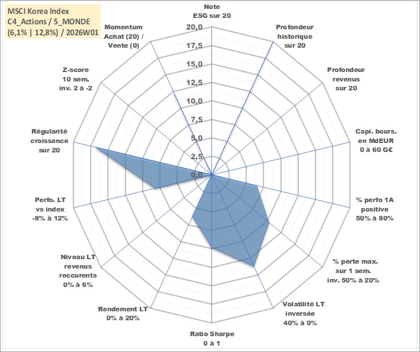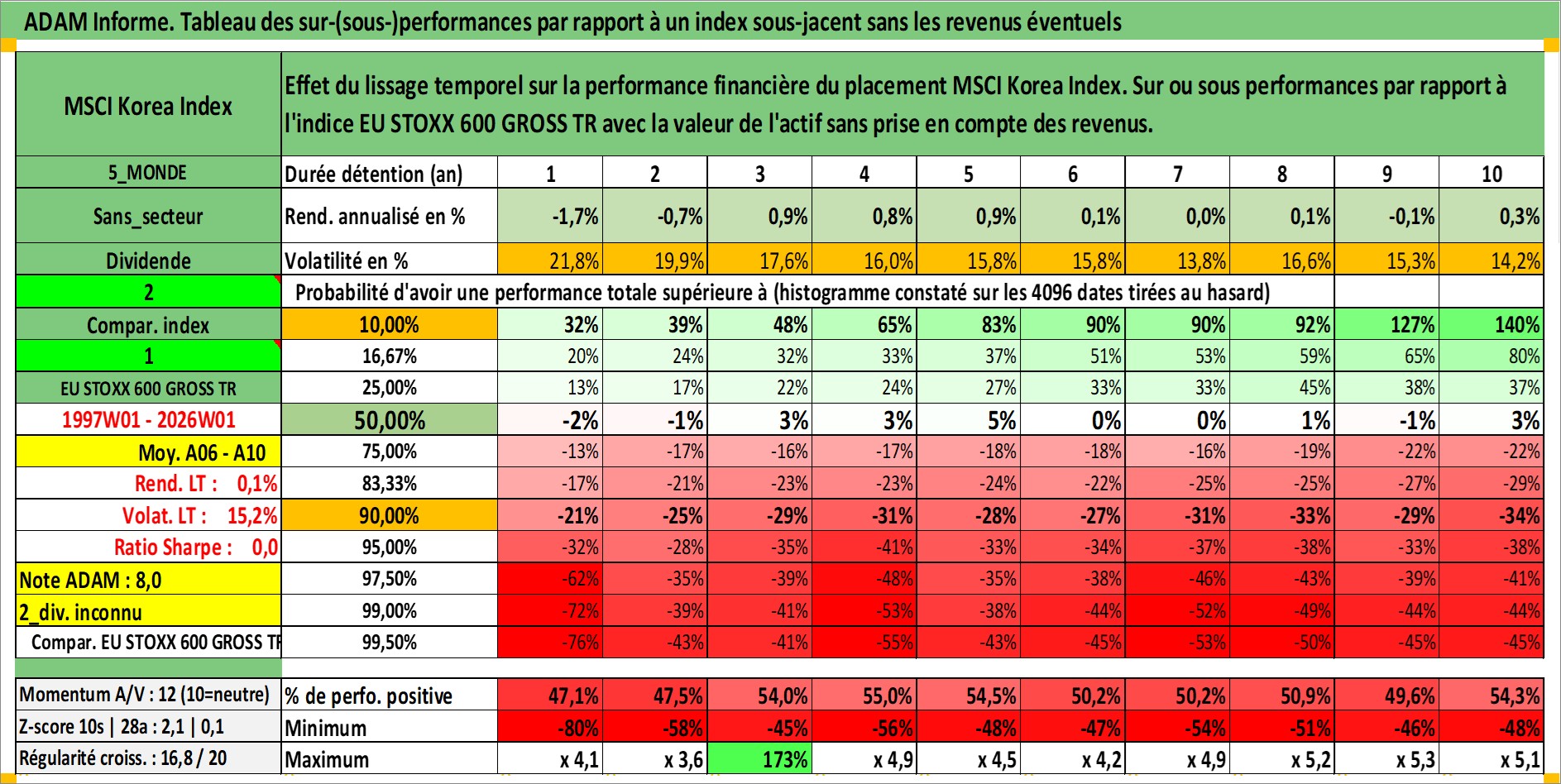 Site dédié aux investisseursPage dédiée sur site financeAnalyse des valorisations hebdomadaires de l'actif MSCI Korea Index. Cet actif est cote en KRW. Les valorisations sont en contrevaleur EURO et couvrent les semaines 1997W01 a 2026W01. Les revenus de cet actif financier ne sont pas connus car non existants ou non disponibles sur le site Yahoo Finance. La note ESG de cet actif n'est pas connue.