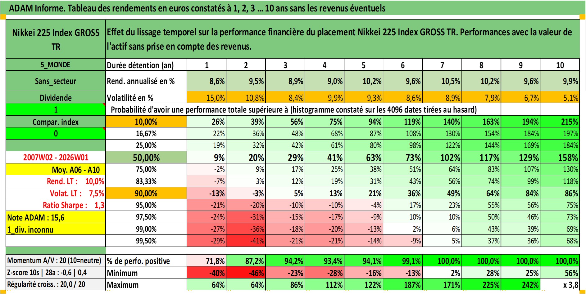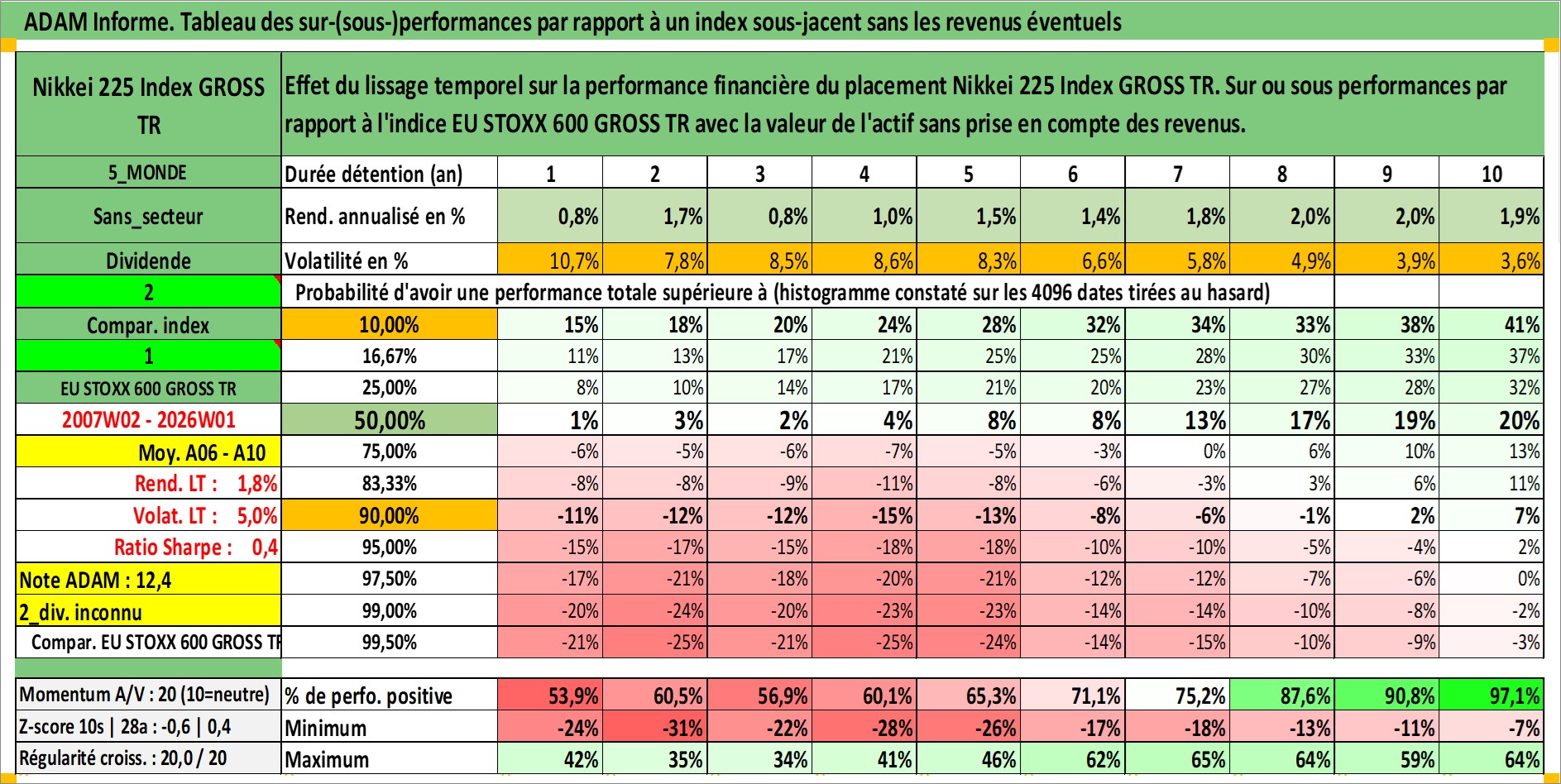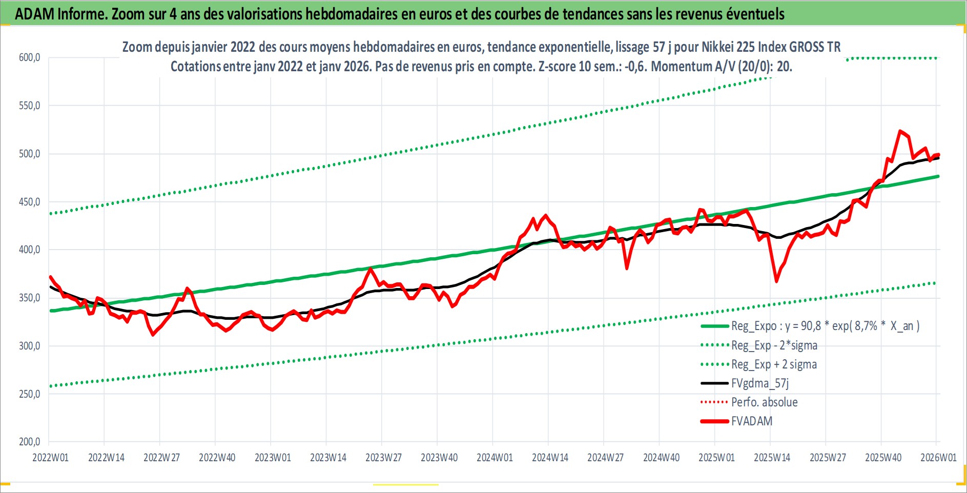 Site dédié aux investisseursPage dédiée sur site financeAnalyse des valorisations hebdomadaires de l'actif Nikkei 225 Index GROSS TR. Cet actif est cote en JPY. Les valorisations sont en contrevaleur EURO et couvrent les semaines 2007W02 a 2026W01. Les revenus de cet actif financier ne sont pas connus car non existants ou non disponibles sur le site Yahoo Finance. La note ESG de cet actif n'est pas connue.