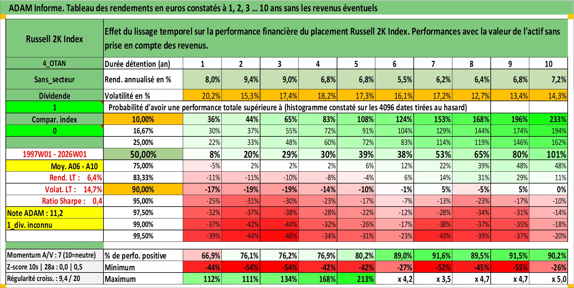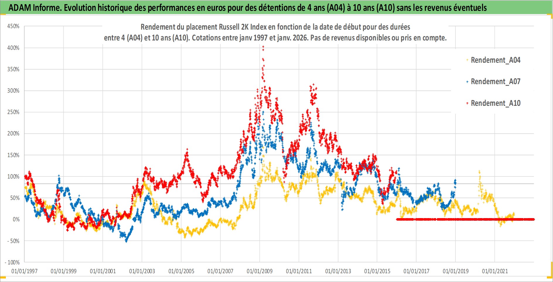 Site dédié aux investisseursPage dédiée sur site financeAnalyse des valorisations hebdomadaires de l'actif Russell 2K Index. Cet actif est cote en USD. Les valorisations sont en contrevaleur EURO et couvrent les semaines 1997W01 a 2026W01. Les revenus de cet actif financier ne sont pas connus car non existants ou non disponibles sur le site Yahoo Finance. La note ESG de cet actif n'est pas connue.
