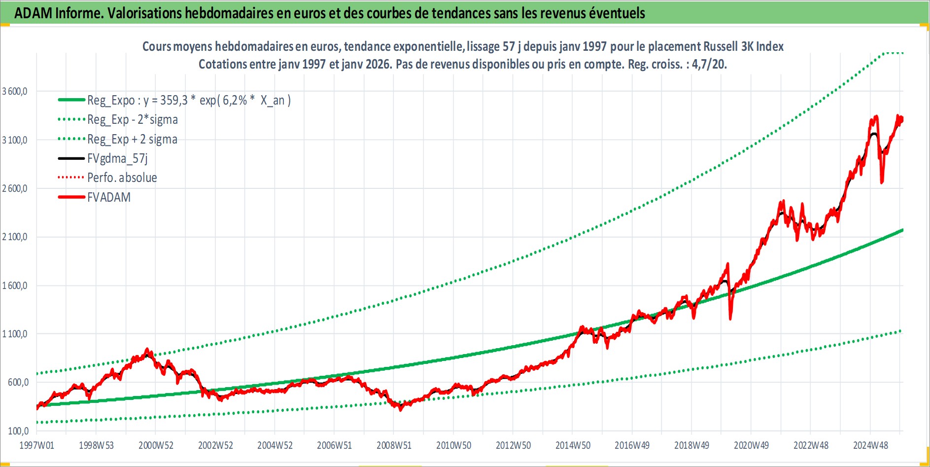 Site dédié aux investisseursPage dédiée sur site financeAnalyse des valorisations hebdomadaires de l'actif Russell 3K Index. Cet actif est cote en USD. Les valorisations sont en contrevaleur EURO et couvrent les semaines 1997W01 a 2026W01. Les revenus de cet actif financier ne sont pas connus car non existants ou non disponibles sur le site Yahoo Finance. La note ESG de cet actif n'est pas connue.