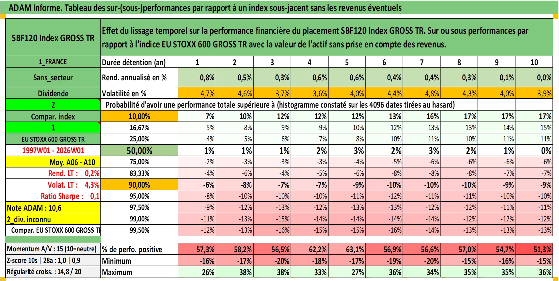 Site dédié aux investisseursPage dédiée sur site financeAnalyse des valorisations hebdomadaires de l'actif SBF120 Index GROSS TR. Cet actif est cote en EUR. Les valorisations couvrent les semaines 1997W01 a 2026W01. Les revenus de cet actif financier ne sont pas connus car non existants ou non disponibles sur le site Yahoo Finance. La note ESG de cet actif n'est pas connue.