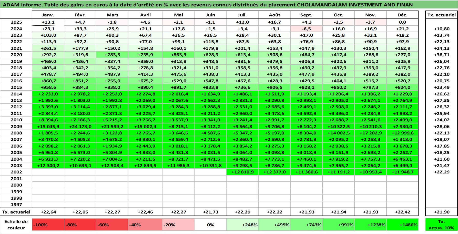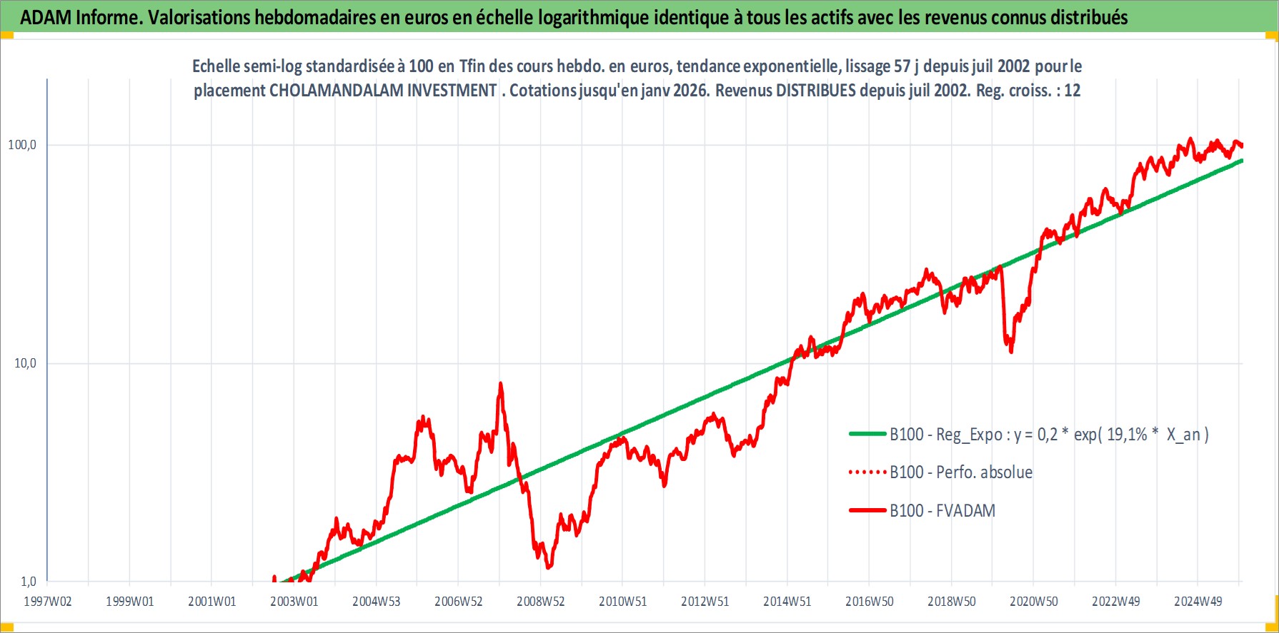 Site dédié aux investisseursPage dédiée sur site financeAnalyse des valorisations hebdomadaires de l'action CHOLAMANDALAM INVESTMENT AND FINAN. Cet actif est cote en INR. Les valorisations sont en contrevaleur EURO et couvrent les semaines 2002W27 a 2026W01. Les revenus de cet actif financier sont pris en compte depuis la semaine 2002W28. La note ESG de cet actif n'est pas connue.