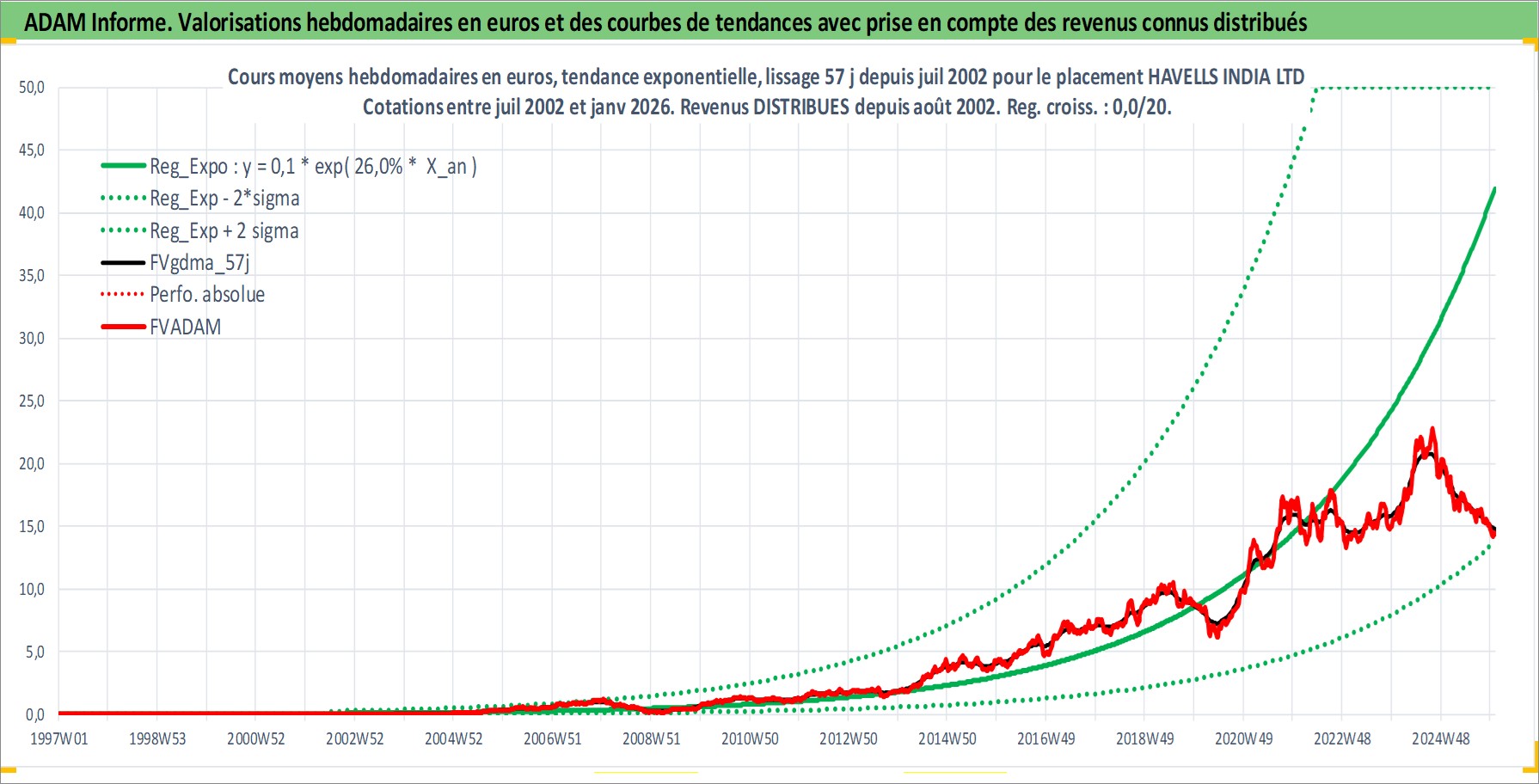 Site dédié aux investisseursPage dédiée sur site financeAnalyse des valorisations hebdomadaires de l'action HAVELLS INDIA LTD. Cet actif est cote en INR. Les valorisations sont en contrevaleur EURO et couvrent les semaines 2002W27 a 2026W01. Les revenus de cet actif financier sont pris en compte depuis la semaine 2002W32. La note ESG de cet actif n'est pas connue.