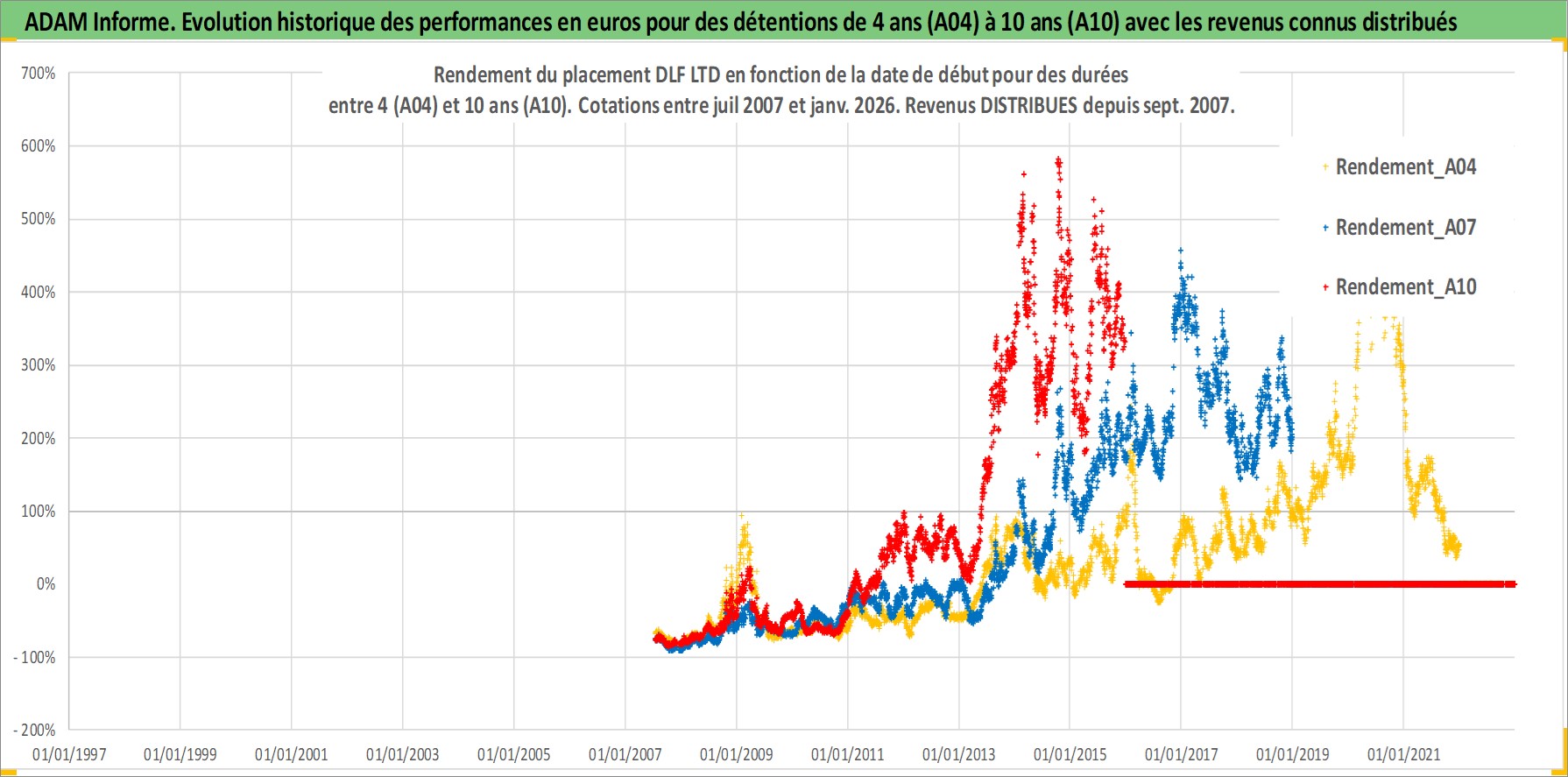 Site dédié aux investisseursPage dédiée sur site financeAnalyse des valorisations hebdomadaires de l'action DLF LTD. Cet actif est cote en INR. Les valorisations sont en contrevaleur EURO et couvrent les semaines 2007W27 a 2026W01. Les revenus de cet actif financier sont pris en compte depuis la semaine 2007W38. La note ESG de cet actif n'est pas connue.