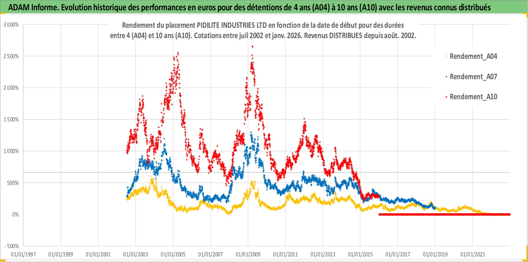 Site dédié aux investisseursPage dédiée sur site financeAnalyse des valorisations hebdomadaires de l'action PIDILITE INDUSTRIES LTD. Cet actif est cote en INR. Les valorisations sont en contrevaleur EURO et couvrent les semaines 2002W27 a 2026W01. Les revenus de cet actif financier sont pris en compte depuis la semaine 2002W34. La note ESG de cet actif n'est pas connue.