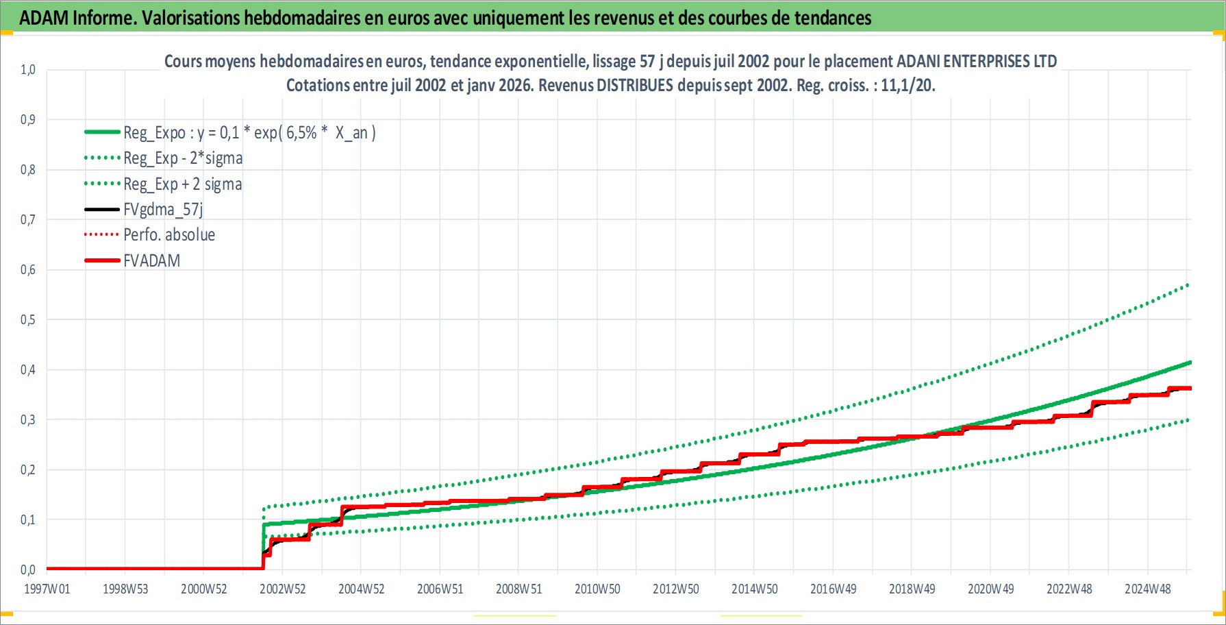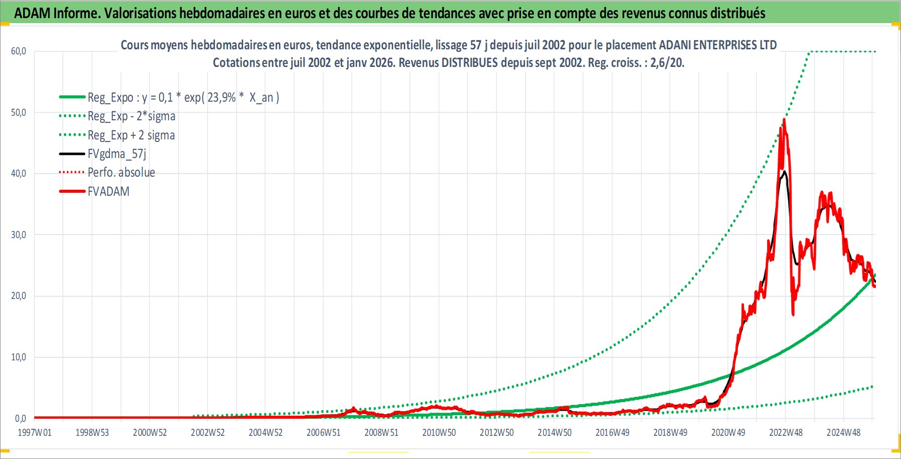 Site dédié aux investisseursPage dédiée sur site financeAnalyse des valorisations hebdomadaires de l'action ADANI ENTERPRISES LTD. Cet actif est cote en INR. Les valorisations sont en contrevaleur EURO et couvrent les semaines 2002W27 a 2026W01. Les revenus de cet actif financier sont pris en compte depuis la semaine 2002W36. La note ESG de cet actif n'est pas connue.