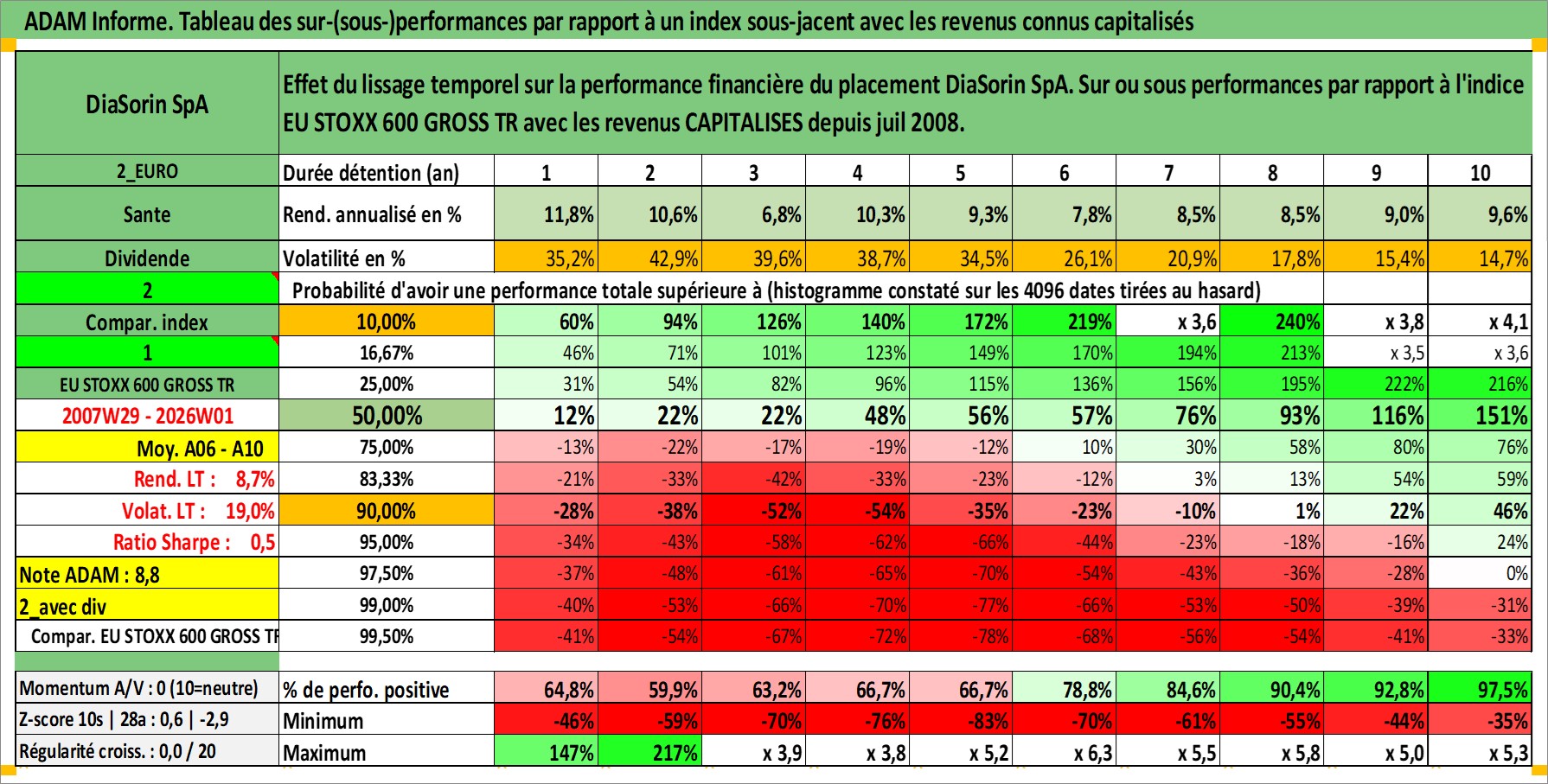 Site dédié aux investisseursPage dédiée sur site financeAnalyse des valorisations hebdomadaires de l'action DiaSorin SpA. Cet actif est cote en EUR. Les valorisations couvrent les semaines 2007W29 a 2026W01. Les revenus de cet actif financier sont pris en compte depuis la semaine 2008W29. La note ESG de cet actif n'est pas connue.