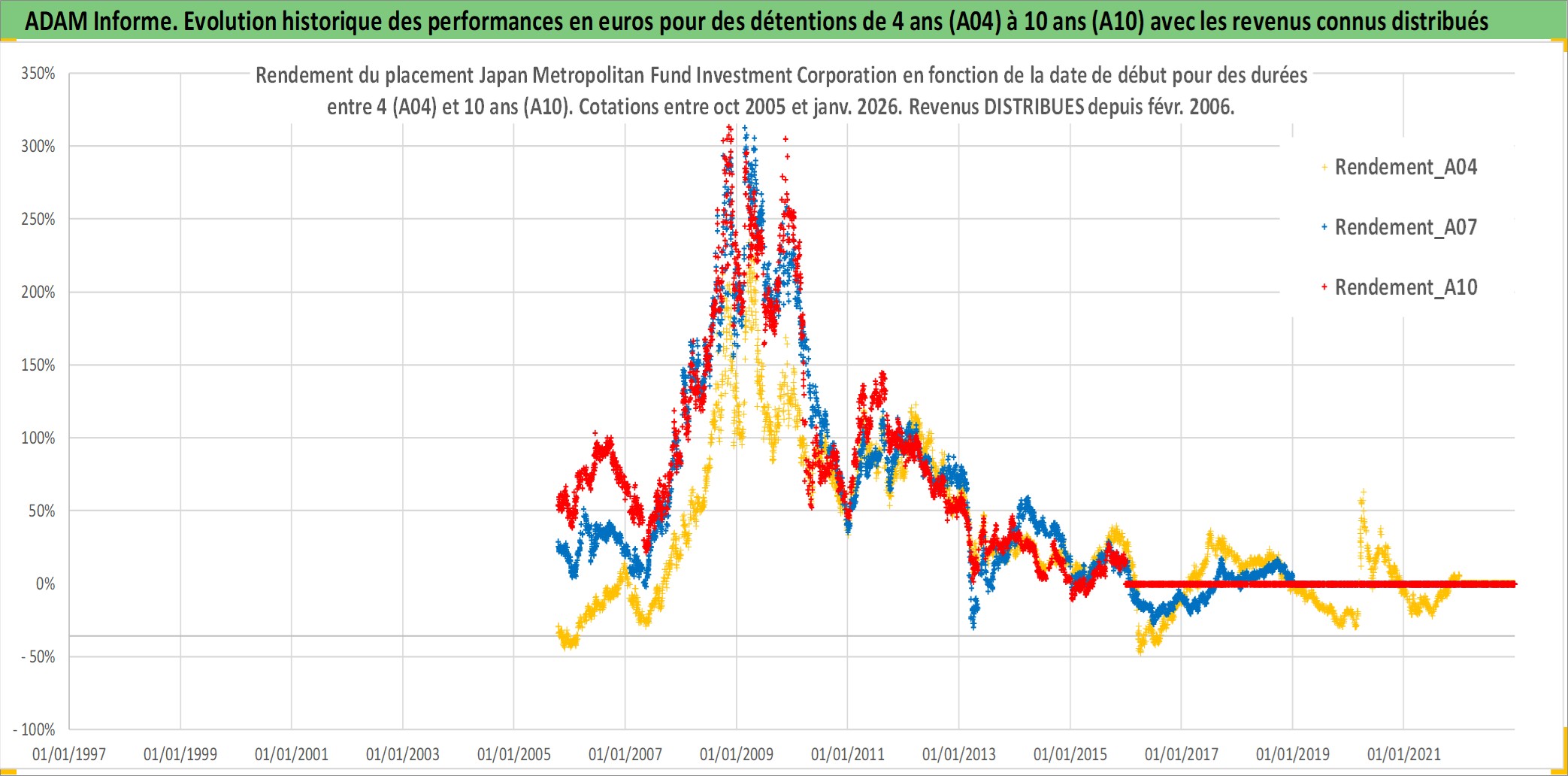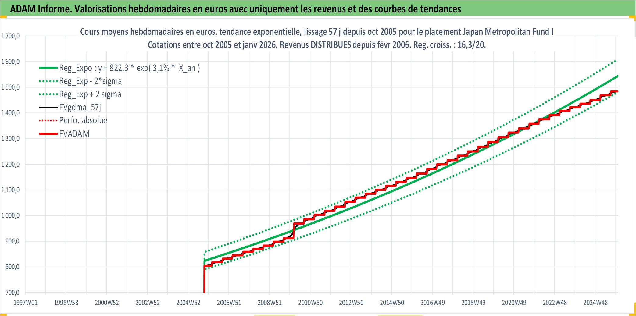 Site dédié aux investisseursPage dédiée sur site financeAnalyse des valorisations hebdomadaires de l'action Japan Metropolitan Fund Investment Corporation. Cet actif est cote en JPY. Les valorisations sont en contrevaleur EURO et couvrent les semaines 2005W40 a 2026W01. Les revenus de cet actif financier sont pris en compte depuis la semaine 2006W08. La note globale ESG de cet actif est estimee a 14.0 (apres rebasage entre 0 et 20).