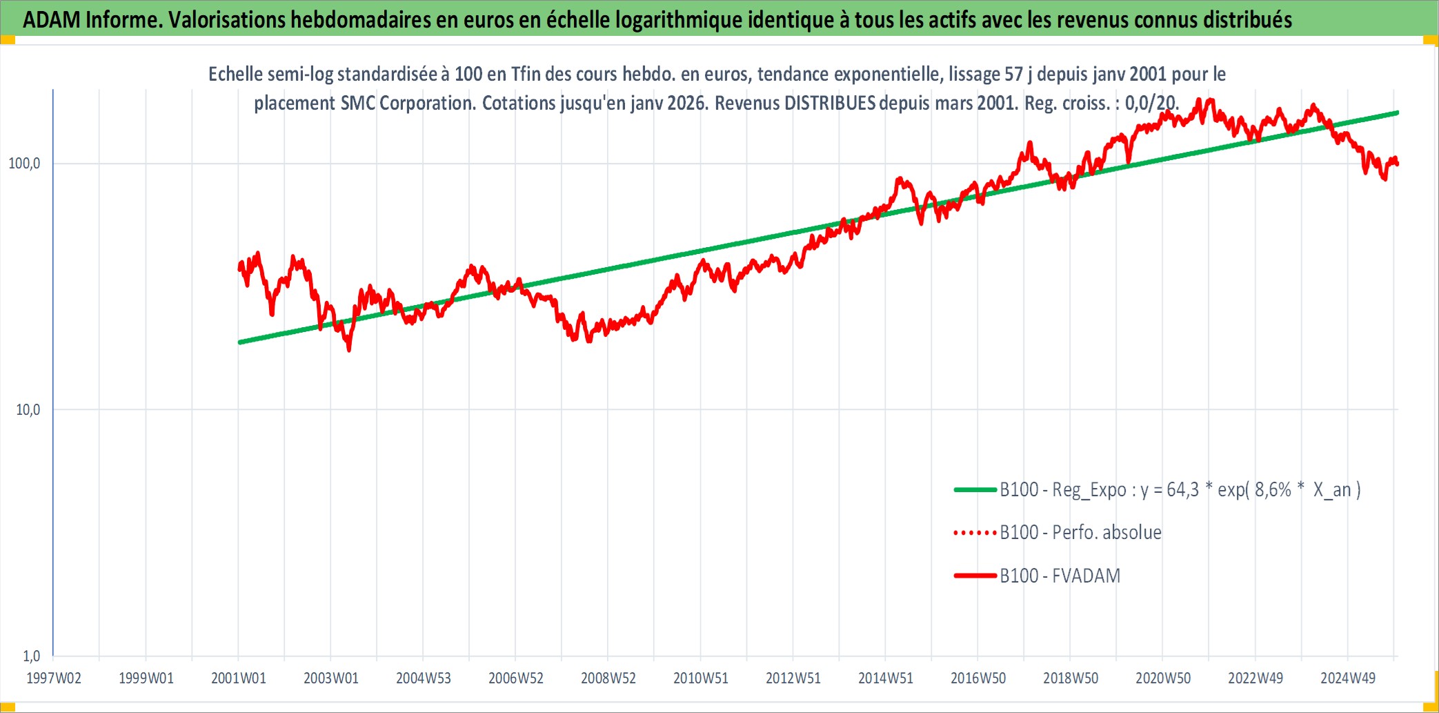 Site dédié aux investisseursPage dédiée sur site financeAnalyse des valorisations hebdomadaires de l'action SMC Corporation. Cet actif est cote en JPY. Les valorisations sont en contrevaleur EURO et couvrent les semaines 2001W02 a 2026W01. Les revenus de cet actif financier sont pris en compte depuis la semaine 2001W13. La note globale ESG de cet actif est estimee a 5.0 (apres rebasage entre 0 et 20).