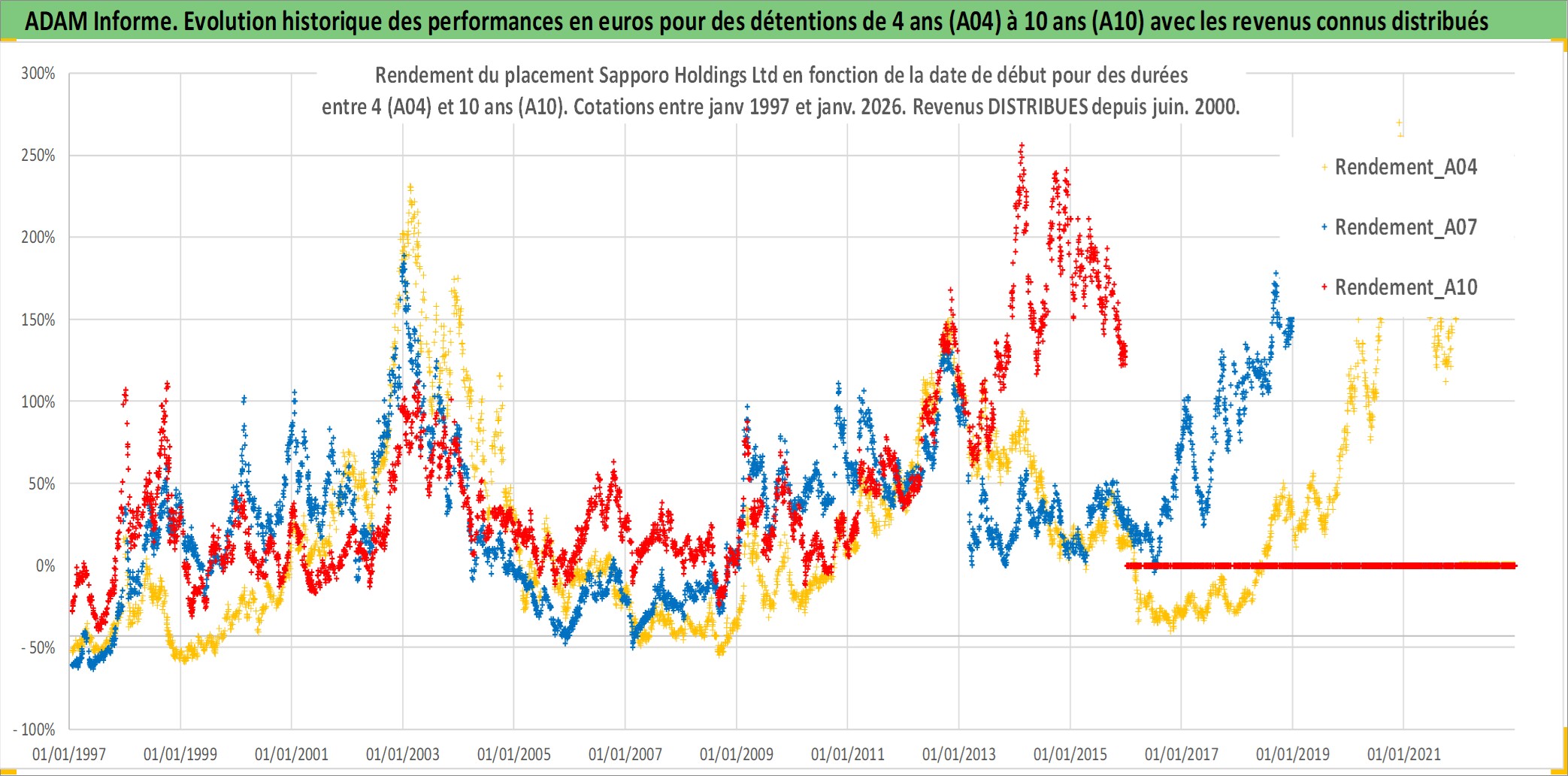 Site dédié aux investisseursPage dédiée sur site financeAnalyse des valorisations hebdomadaires de l'action Sapporo Holdings Ltd. Cet actif est cote en JPY. Les valorisations sont en contrevaleur EURO et couvrent les semaines 1997W01 a 2026W01. Les revenus de cet actif financier sont pris en compte depuis la semaine 2000W26. La note ESG de cet actif n'est pas connue.