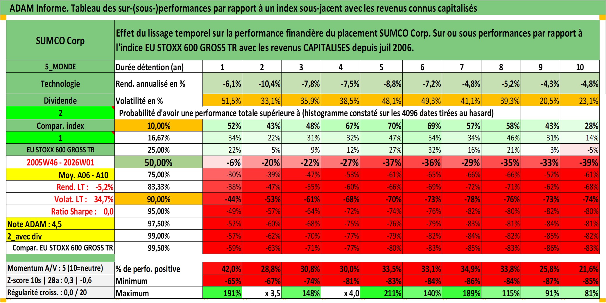 Site dédié aux investisseursPage dédiée sur site financeAnalyse des valorisations hebdomadaires de l'action SUMCO Corp. Cet actif est cote en JPY. Les valorisations sont en contrevaleur EURO et couvrent les semaines 2005W46 a 2026W01. Les revenus de cet actif financier sont pris en compte depuis la semaine 2006W30. La note ESG de cet actif n'est pas connue.