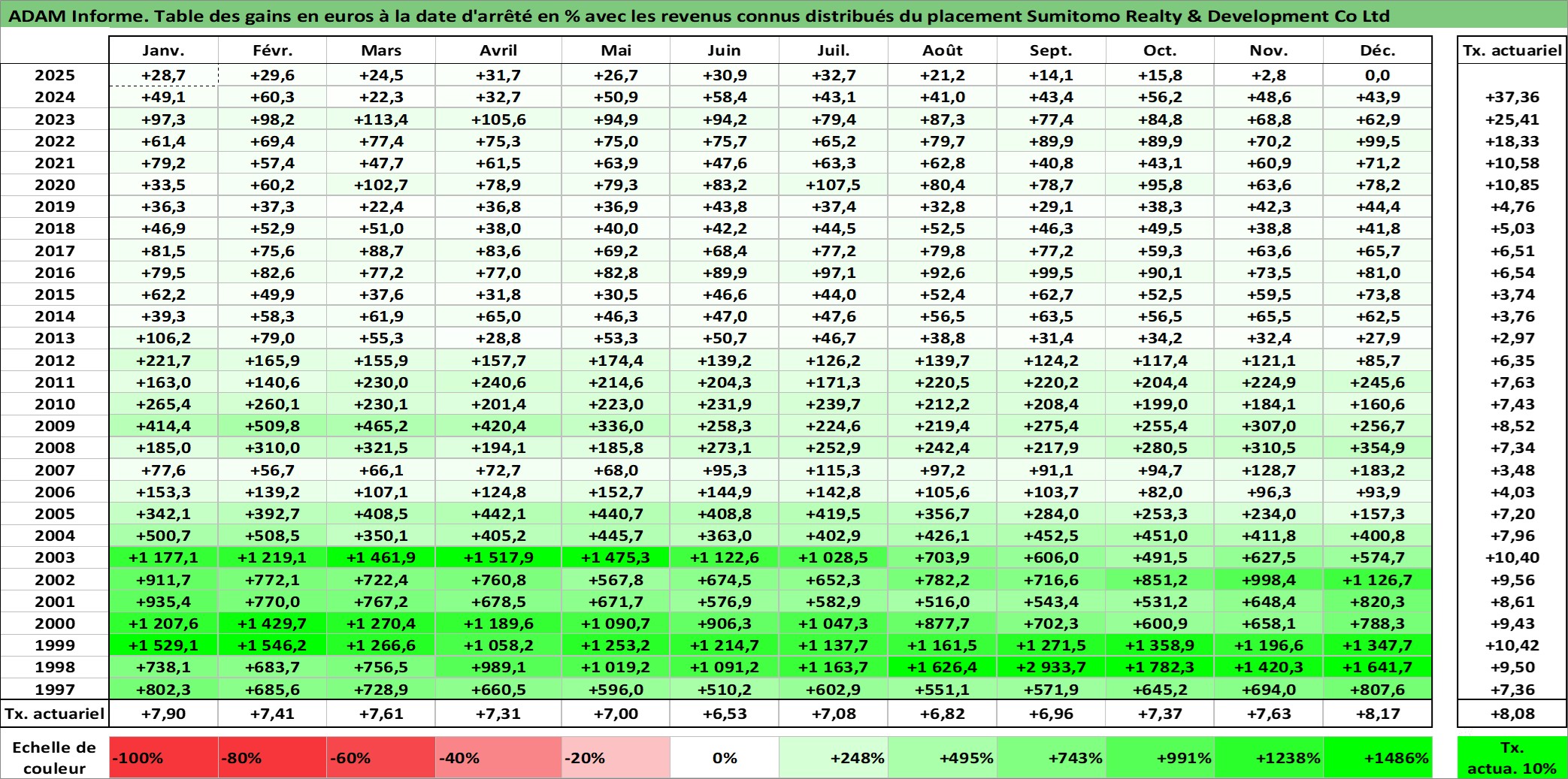 Site dédié aux investisseursPage dédiée sur site financeAnalyse des valorisations hebdomadaires de l'action Sumitomo Realty & Development Co Ltd. Cet actif est cote en JPY. Les valorisations sont en contrevaleur EURO et couvrent les semaines 1997W01 a 2026W01. Les revenus de cet actif financier sont pris en compte depuis la semaine 1997W13. La note globale ESG de cet actif est estimee a 8.0 (apres rebasage entre 0 et 20).