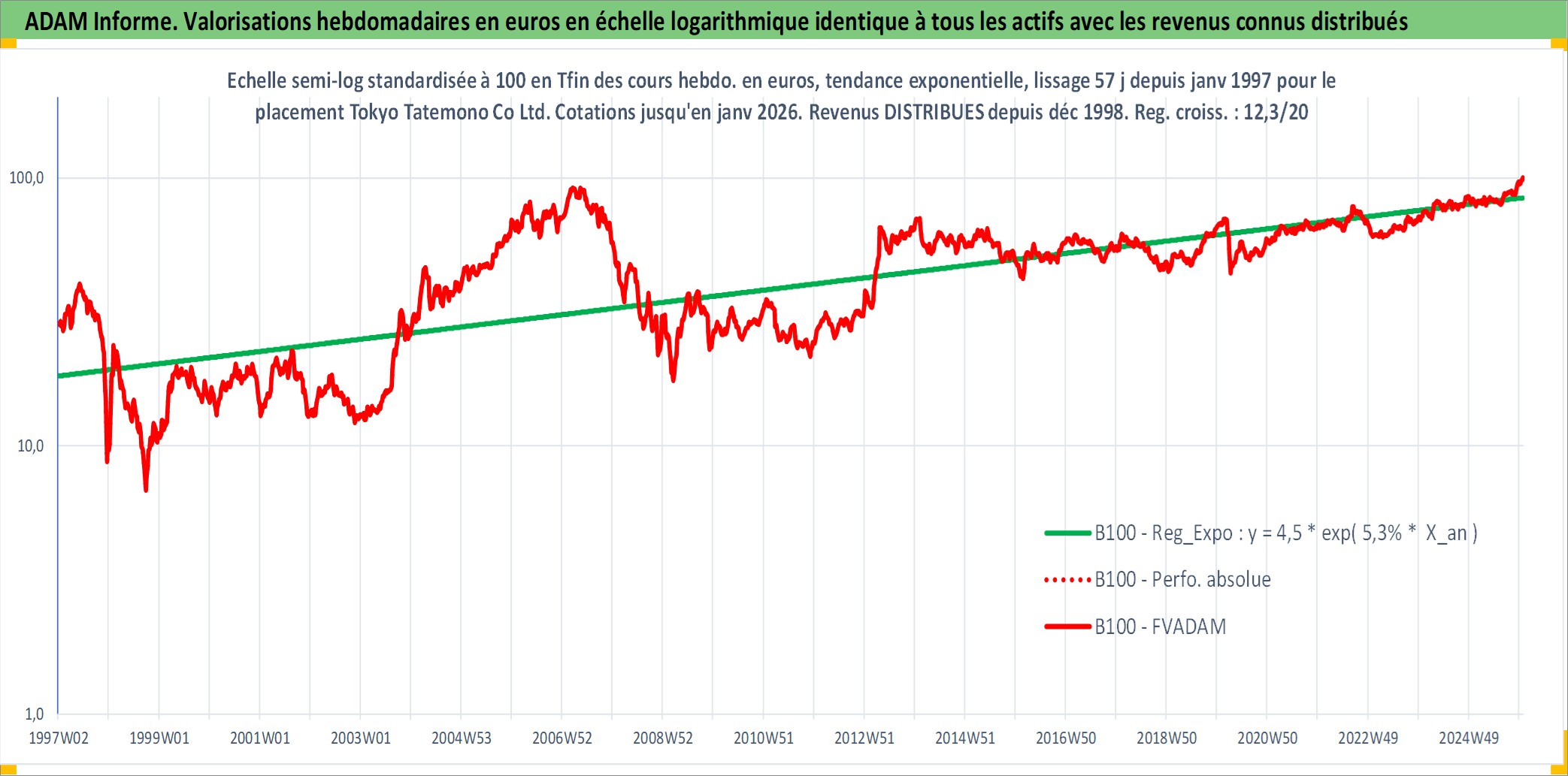 Site dédié aux investisseursPage dédiée sur site financeAnalyse des valorisations hebdomadaires de l'action Tokyo Tatemono Co Ltd. Cet actif est cote en JPY. Les valorisations sont en contrevaleur EURO et couvrent les semaines 1997W01 a 2026W01. Les revenus de cet actif financier sont pris en compte depuis la semaine 1998W52. La note ESG de cet actif n'est pas connue.