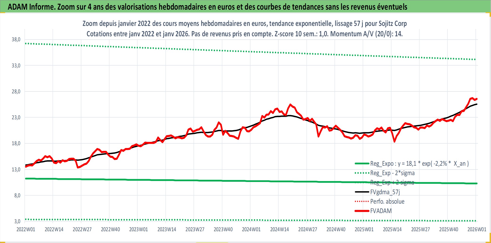 Site dédié aux investisseursPage dédiée sur site financeAnalyse des valorisations hebdomadaires de l'action Sojitz Corp. Cet actif est cote en JPY. Les valorisations sont en contrevaleur EURO et couvrent les semaines 2000W01 a 2026W01. Les revenus de cet actif financier sont pris en compte depuis la semaine 2007W13. La note ESG de cet actif n'est pas connue.