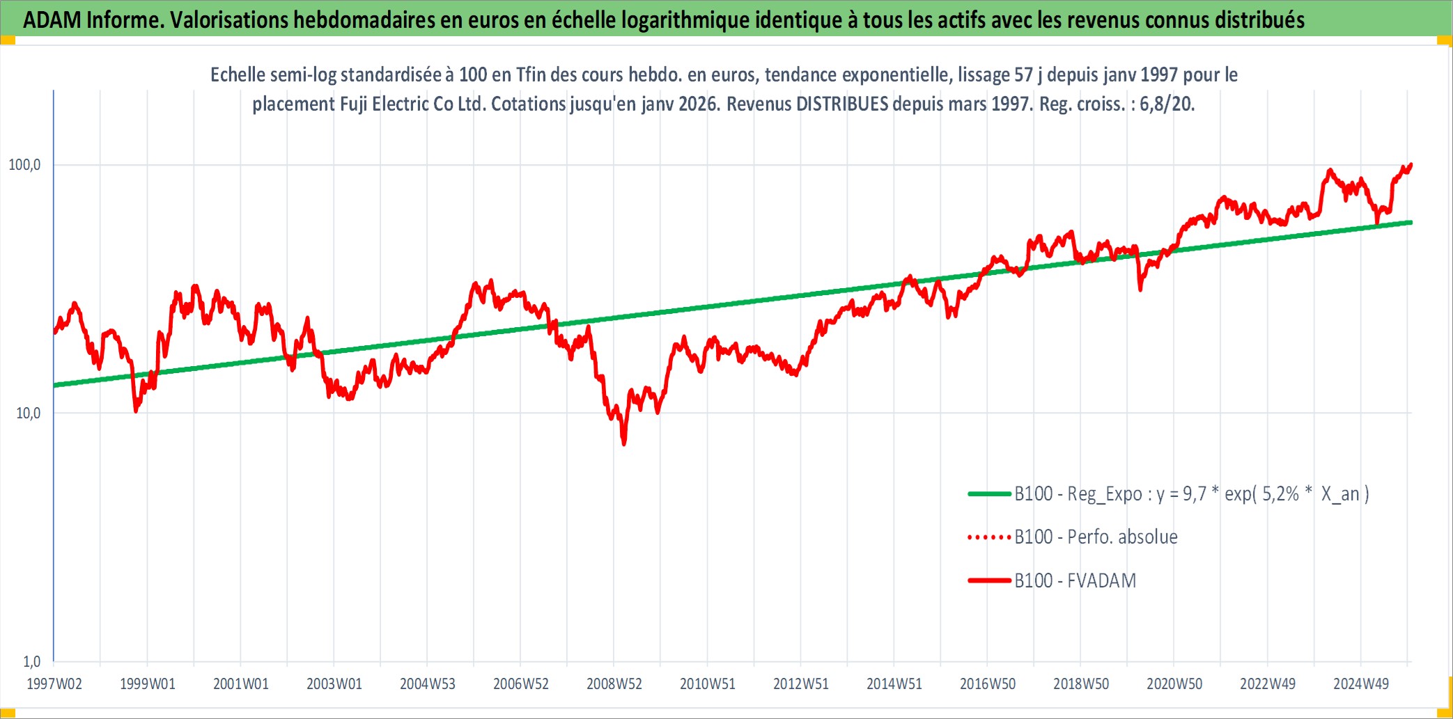 Site dédié aux investisseursPage dédiée sur site financeAnalyse des valorisations hebdomadaires de l'action Fuji Electric Co Ltd. Cet actif est cote en JPY. Les valorisations sont en contrevaleur EURO et couvrent les semaines 1997W01 a 2026W01. Les revenus de cet actif financier sont pris en compte depuis la semaine 1997W13. La note ESG de cet actif n'est pas connue.