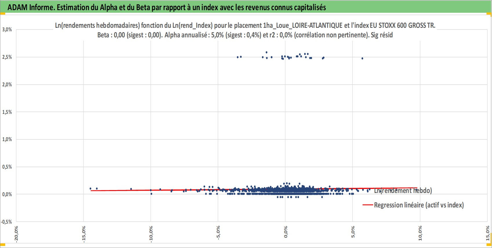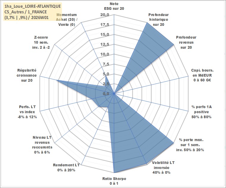 Site dédié aux investisseursPage dédiée sur site financeAnalyse des valorisations hebdomadaires de l'actif 1ha_Loue_LOIRE-ATLANTIQUE. Cet actif est cote en EUR. Les valorisations couvrent les semaines 1997W01 a 2026W01. Les fermages de ce bien foncier sont pris egaux a 2,5% annuels de la valeur venale du bien.