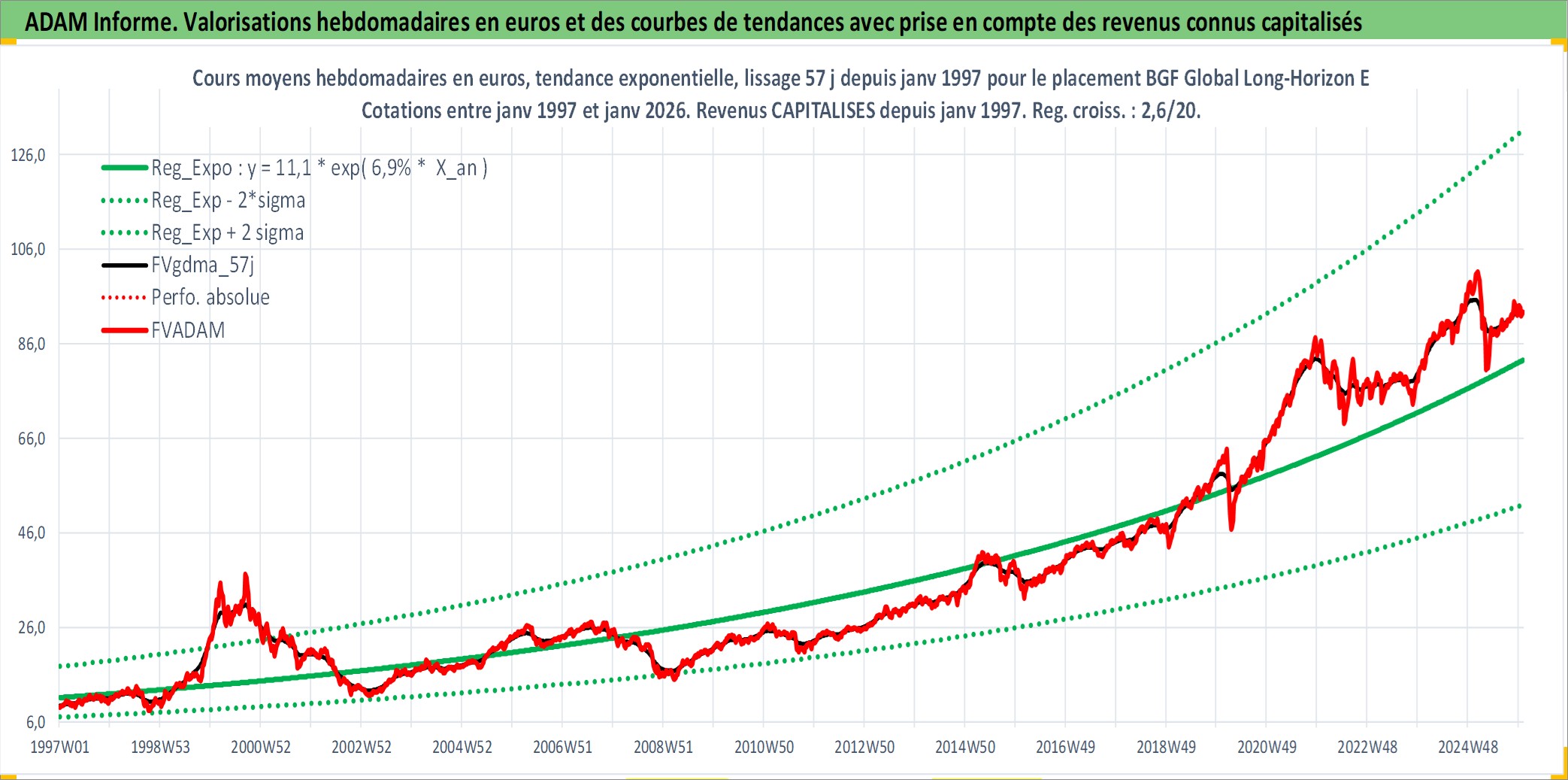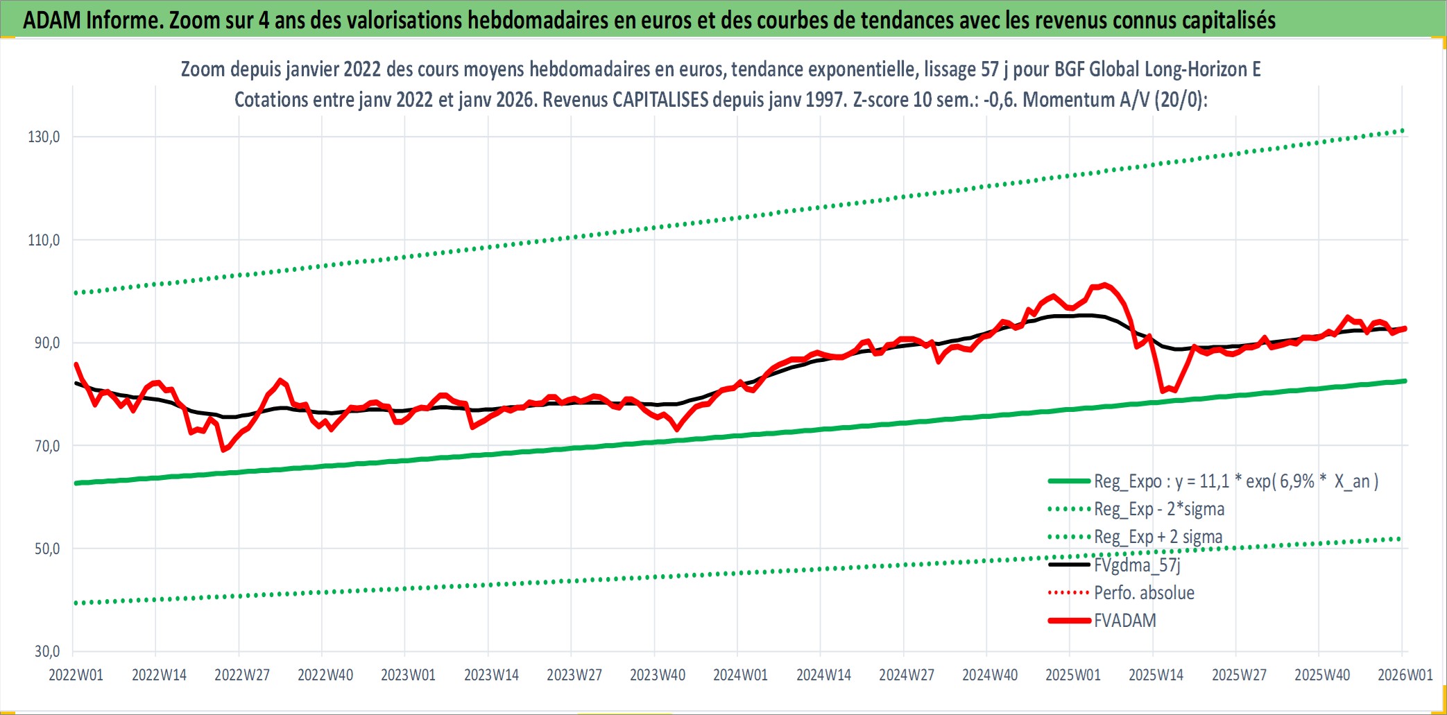 Site dédié aux investisseursPage dédiée sur site financeAnalyse des valorisations hebdomadaires du fonds BGF Global Long-Horizon Equity Fund Matla Acc. Cet actif est cote en USD. Les valorisations sont en contrevaleur EURO et couvrent les semaines 1997W01 a 2026W01. Les revenus de cet actif financier sont pris en compte depuis la semaine 1997W01. La note globale ESG de cet actif est estimee a 7.3 (apres rebasage entre 0 et 20).