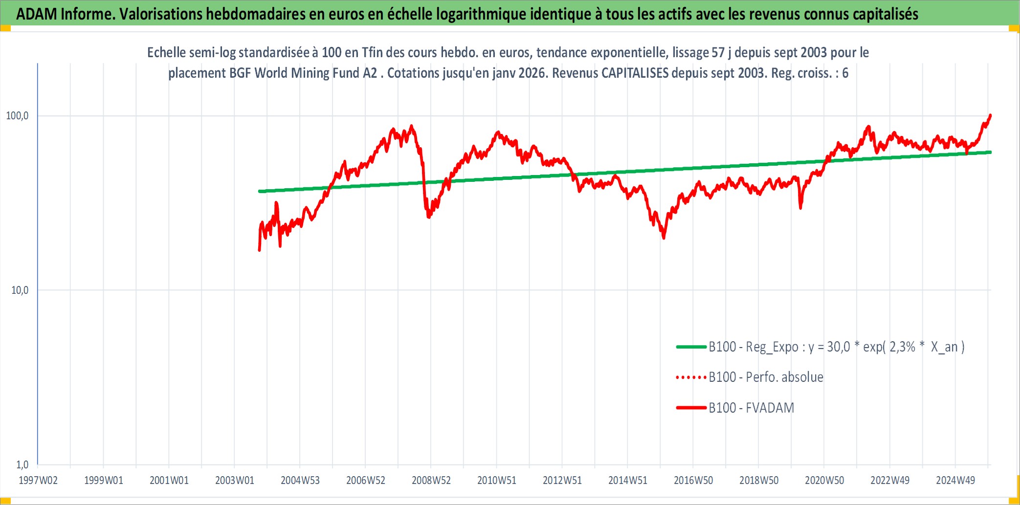 Site dédié aux investisseursPage dédiée sur site financeAnalyse des valorisations hebdomadaires du fonds BGF World Mining Fund A2 USD Matla Acc. Cet actif est cote en USD. Les valorisations sont en contrevaleur EURO et couvrent les semaines 2003W40 a 2026W01. Les revenus de cet actif financier sont pris en compte depuis la semaine 2003W40. La note globale ESG de cet actif est estimee a 6.6 (apres rebasage entre 0 et 20).