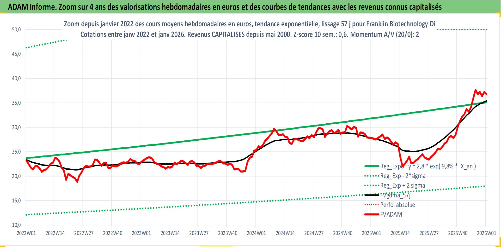 Site dédié aux investisseursPage dédiée sur site financeAnalyse des valorisations hebdomadaires du fonds Franklin Biotechnology Discv A USD Acc. Cet actif est cote en SGD. Les valorisations sont en contrevaleur EURO et couvrent les semaines 2000W18 a 2026W01. Les revenus de cet actif financier sont pris en compte depuis la semaine 2000W18. La note globale ESG de cet actif est estimee a 5.0 (apres rebasage entre 0 et 20).