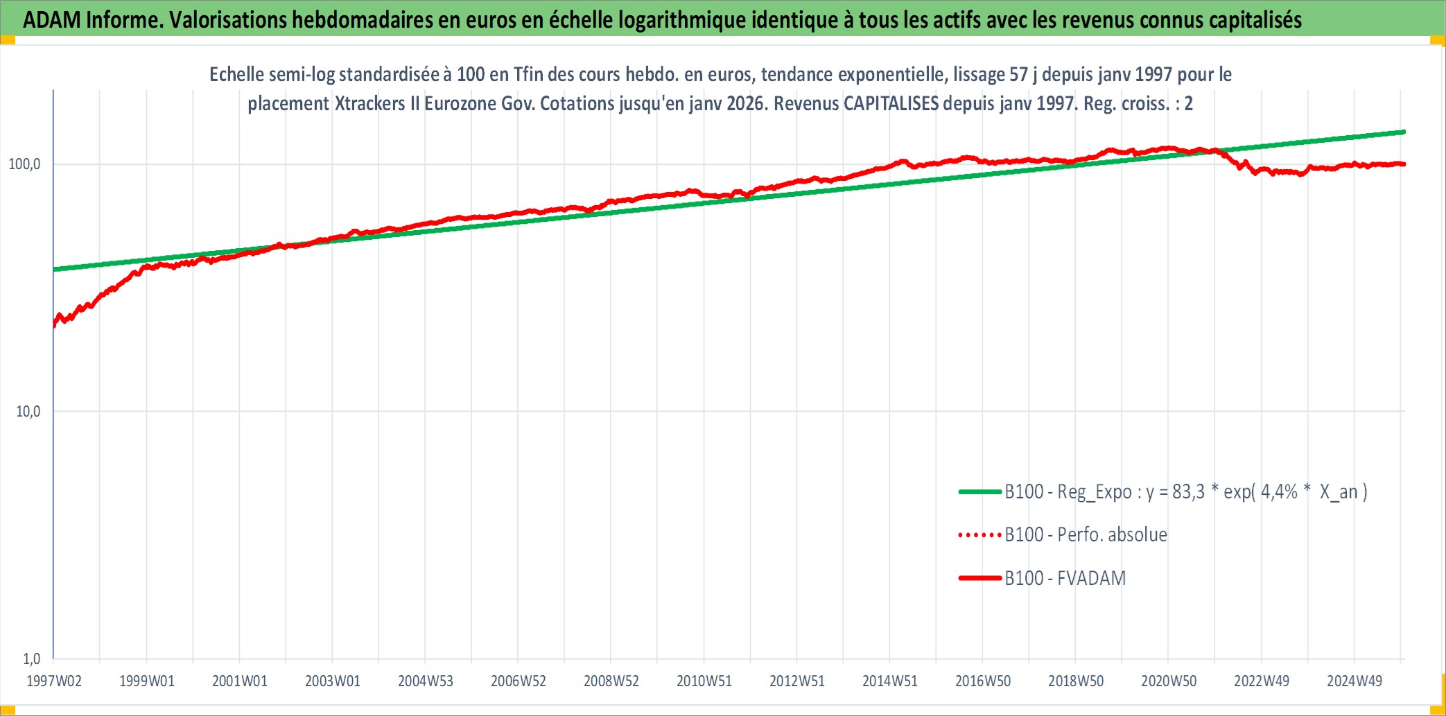 Site dédié aux investisseursPage dédiée sur site financeAnalyse des valorisations hebdomadaires du fonds Xtrackers II Eurozone Government Bond UCITS ETF 1C Acc. Cet actif est cote en EUR. Les valorisations couvrent les semaines 1997W01 a 2026W01. Les revenus de cet actif financier sont pris en compte depuis la semaine 1997W01. La note ESG de cet actif n'est pas connue.