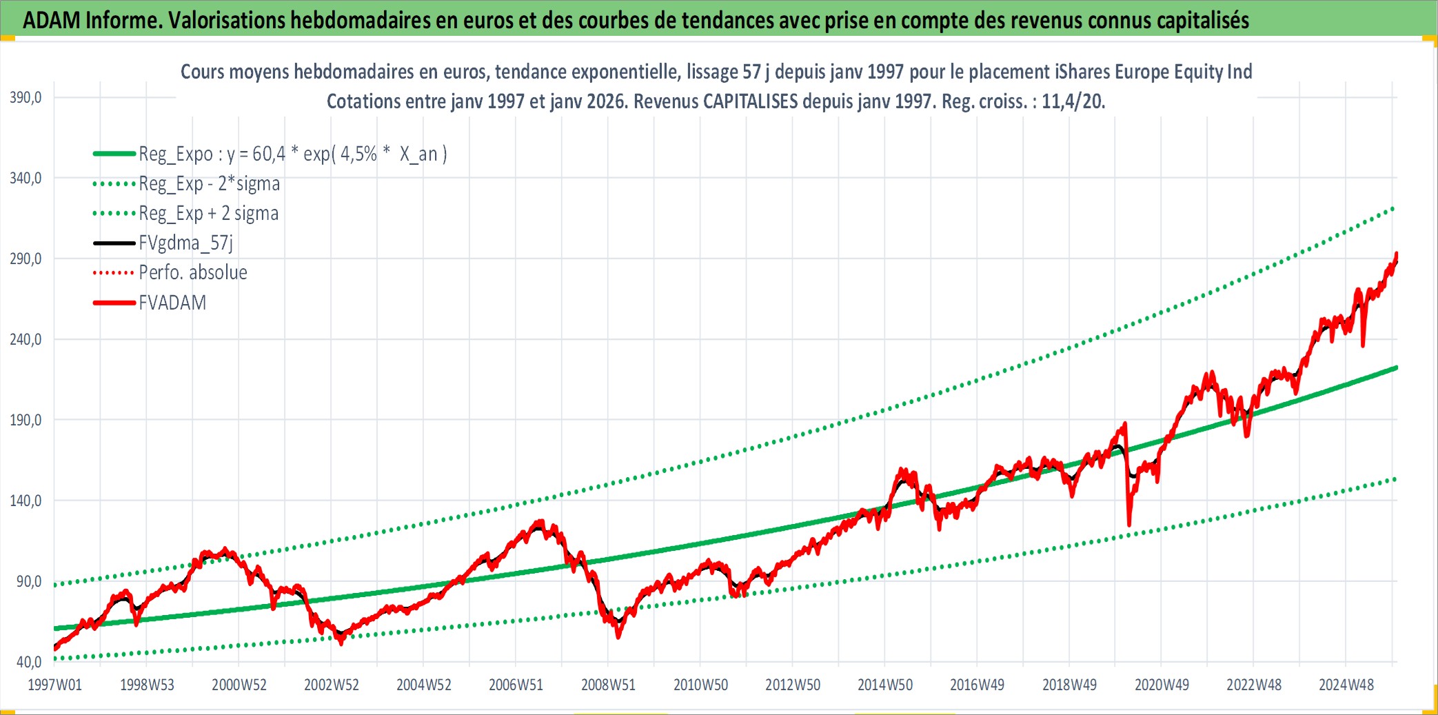 Site dédié aux investisseursPage dédiée sur site financeAnalyse des valorisations hebdomadaires du fonds iShares Europe Equity Index Fund PER_SG Acc. Cet actif est cote en EUR. Les valorisations couvrent les semaines 1997W01 a 2026W01. Les revenus de cet actif financier sont pris en compte depuis la semaine 1997W01. La note globale ESG de cet actif est estimee a 7.9 (apres rebasage entre 0 et 20).