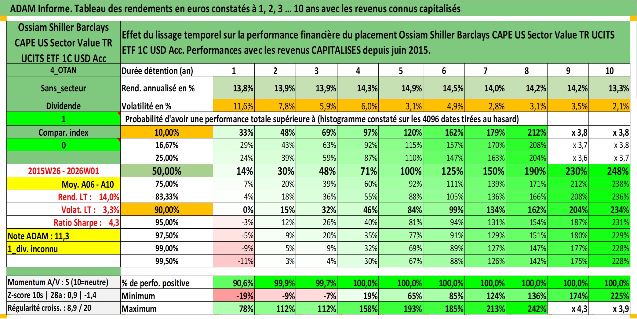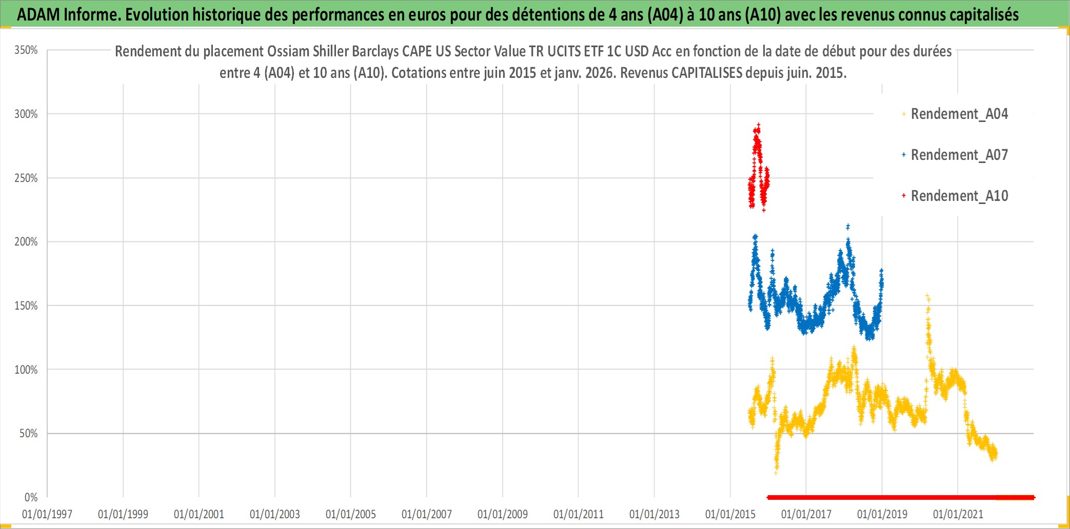 Site dédié aux investisseursPage dédiée sur site financeAnalyse des valorisations hebdomadaires du fonds Ossiam Shiller Barclays CAPE US Sector Value TR UCITS ETF 1C USD Acc. Cet actif est cote en USD. Les valorisations sont en contrevaleur EURO et couvrent les semaines 2015W26 a 2026W01. Les revenus de cet actif financier sont pris en compte depuis la semaine 2015W26. La note ESG de cet actif n'est pas connue.