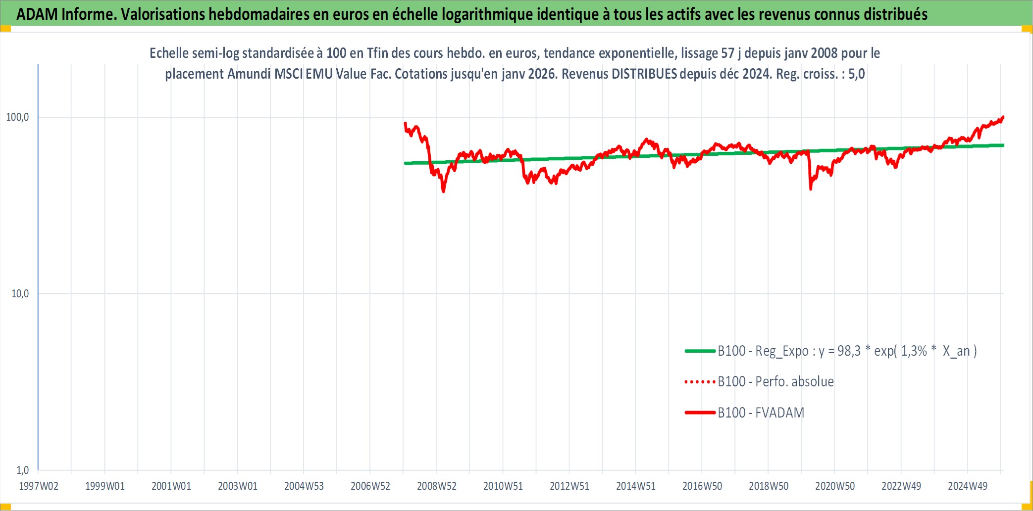 Site dédié aux investisseursPage dédiée sur site financeAnalyse des valorisations hebdomadaires du fonds Amundi MSCI EMU Value Factor UCITS ETF Dist. Cet actif est cote en EUR. Les valorisations couvrent les semaines 2008W03 a 2026W01. Les revenus de cet actif financier sont pris en compte depuis la semaine 2024W50. La note ESG de cet actif n'est pas connue.