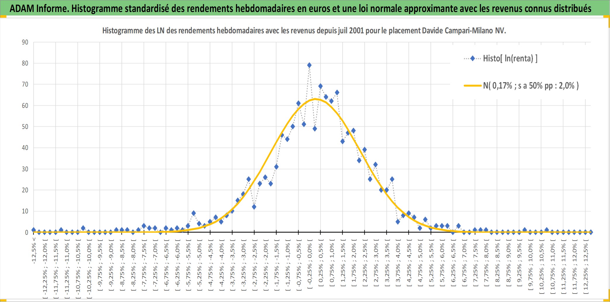 Site dédié aux investisseursPage dédiée sur site financeAnalyse des valorisations hebdomadaires de l'action Davide Campari-Milano NV. Cet actif est cote en EUR. Les valorisations couvrent les semaines 2001W27 a 2026W01. Les revenus de cet actif financier sont pris en compte depuis la semaine 2002W19. La note globale ESG de cet actif est estimee a 11.0 (apres rebasage entre 0 et 20).