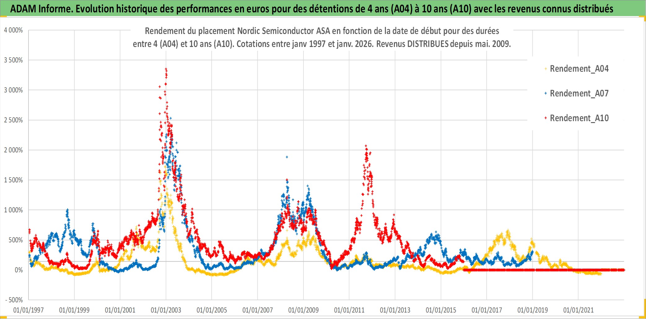 Site dédié aux investisseursPage dédiée sur site financeAnalyse des valorisations hebdomadaires de l'action Nordic Semiconductor ASA. Cet actif est cote en NOK. Les valorisations sont en contrevaleur EURO et couvrent les semaines 1997W01 a 2026W01. Les revenus de cet actif financier sont pris en compte depuis la semaine 2009W19. La note ESG de cet actif n'est pas connue.