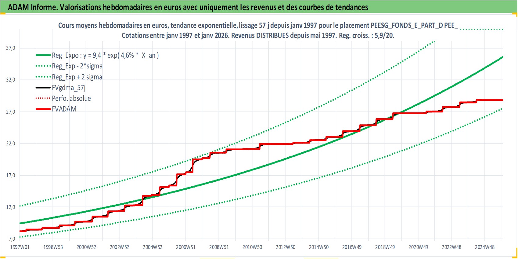 Site dédié aux investisseursPage dédiée sur site financeAnalyse des valorisations hebdomadaires du fonds PEESG_FONDS_E_PART_D PEE_SG Dist. Cet actif est cote en EUR. Les valorisations couvrent les semaines 1997W01 a 2026W01. Les revenus de cet actif financier sont pris en compte depuis la semaine 1997W21. La note ESG de cet actif n'est pas connue.