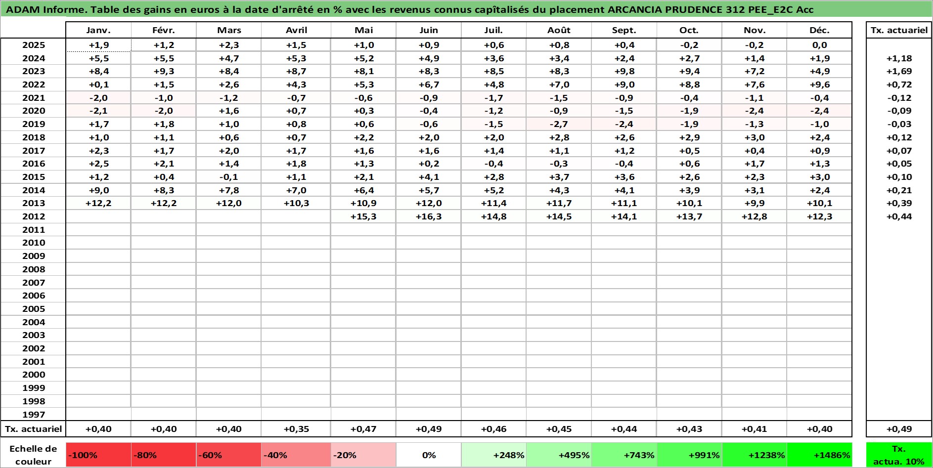 Site dédié aux investisseursPage dédiée sur site financeAnalyse des valorisations hebdomadaires du fonds ARCANCIA PRUDENCE 312 PEE_E2C Acc. Cet actif est cote en EUR. Les valorisations couvrent les semaines 2012W21 a 2026W01. Les revenus de cet actif financier sont pris en compte depuis la semaine 2012W21. La note ESG de cet actif n'est pas connue.