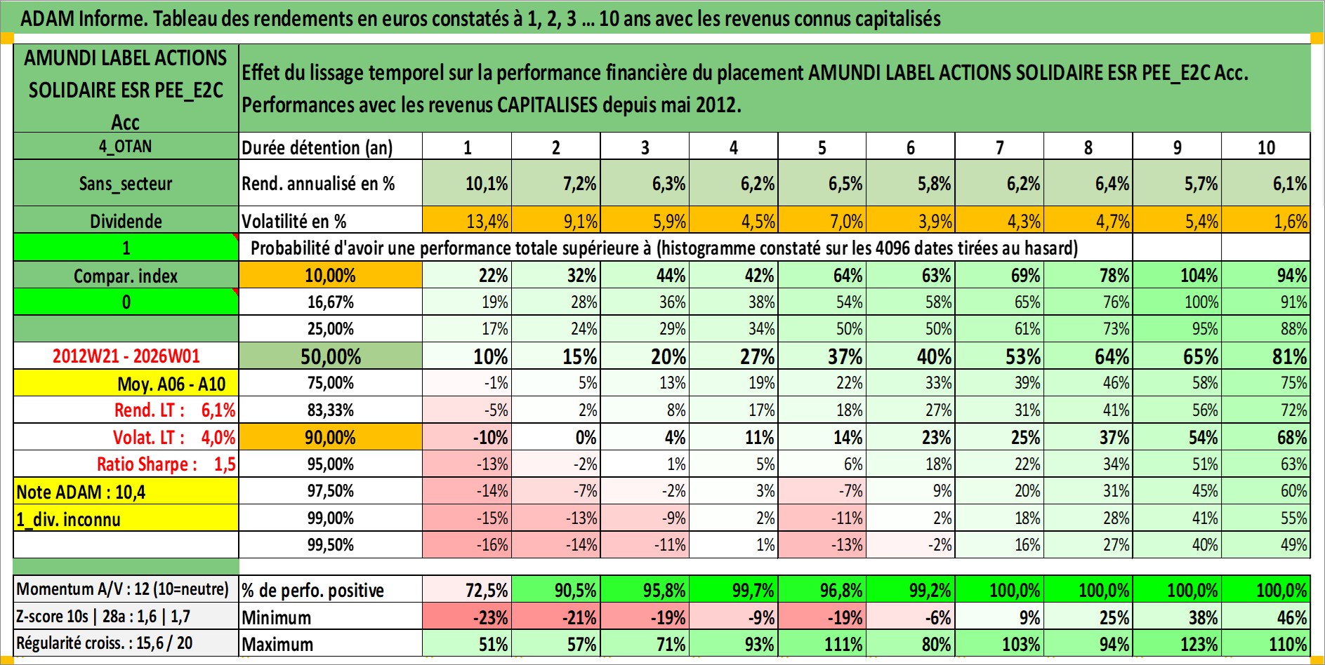 Site dédié aux investisseursPage dédiée sur site financeAnalyse des valorisations hebdomadaires du fonds AMUNDI LABEL ACTIONS SOLIDAIRE ESR PEE_E2C Acc. Cet actif est cote en EUR. Les valorisations couvrent les semaines 2012W21 a 2026W01. Les revenus de cet actif financier sont pris en compte depuis la semaine 2012W21. La note ESG de cet actif n'est pas connue.