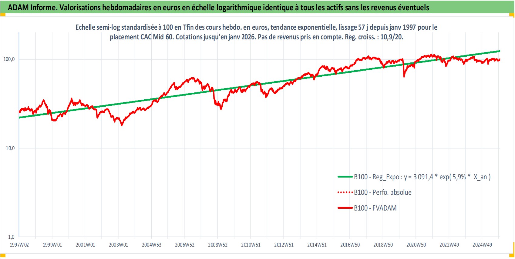 Site dédié aux investisseursPage dédiée sur site financeAnalyse des valorisations hebdomadaires de l'actif CAC Mid 60. Cet actif est cote en EUR. Les valorisations couvrent les semaines 1997W01 a 2026W01. Les revenus de cet actif financier ne sont pas connus car non existants ou non disponibles sur le site Yahoo Finance. La note ESG de cet actif n'est pas connue.