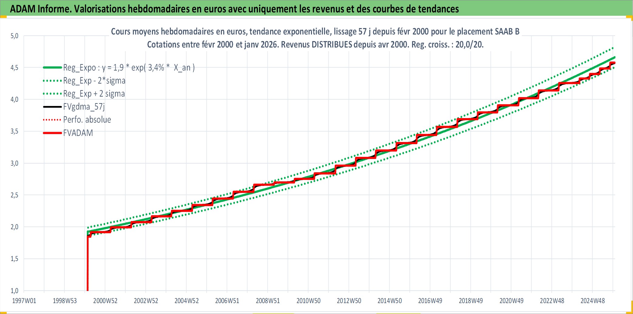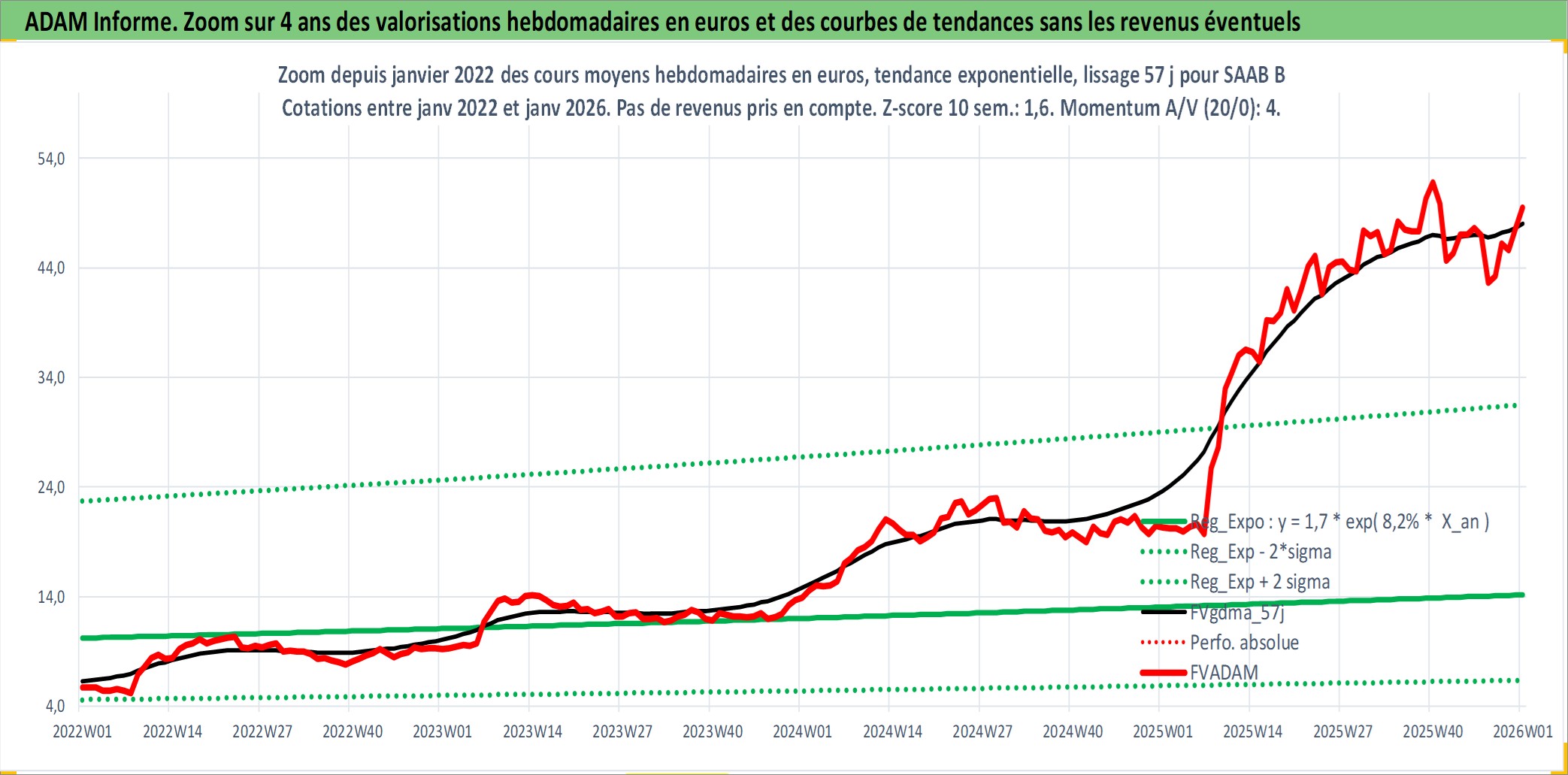Site dédié aux investisseursPage dédiée sur site financeAnalyse des valorisations hebdomadaires de l'action SAAB B. Cet actif est cote en SEK. Les valorisations sont en contrevaleur EURO et couvrent les semaines 2000W07 a 2026W01. Les revenus de cet actif financier sont pris en compte depuis la semaine 2000W15. La note ESG de cet actif n'est pas connue.