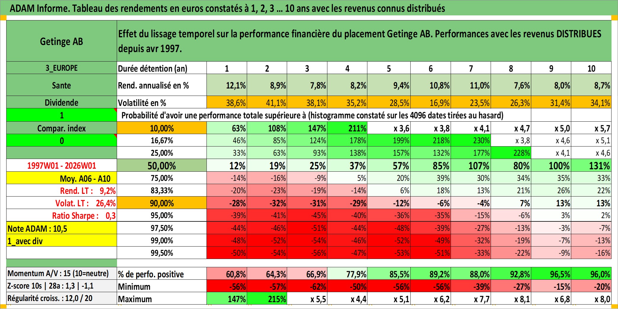 Site dédié aux investisseursPage dédiée sur site financeAnalyse des valorisations hebdomadaires de l'action Getinge AB. Cet actif est cote en SEK. Les valorisations sont en contrevaleur EURO et couvrent les semaines 1997W01 a 2026W01. Les revenus de cet actif financier sont pris en compte depuis la semaine 1997W18. La note ESG de cet actif n'est pas connue.