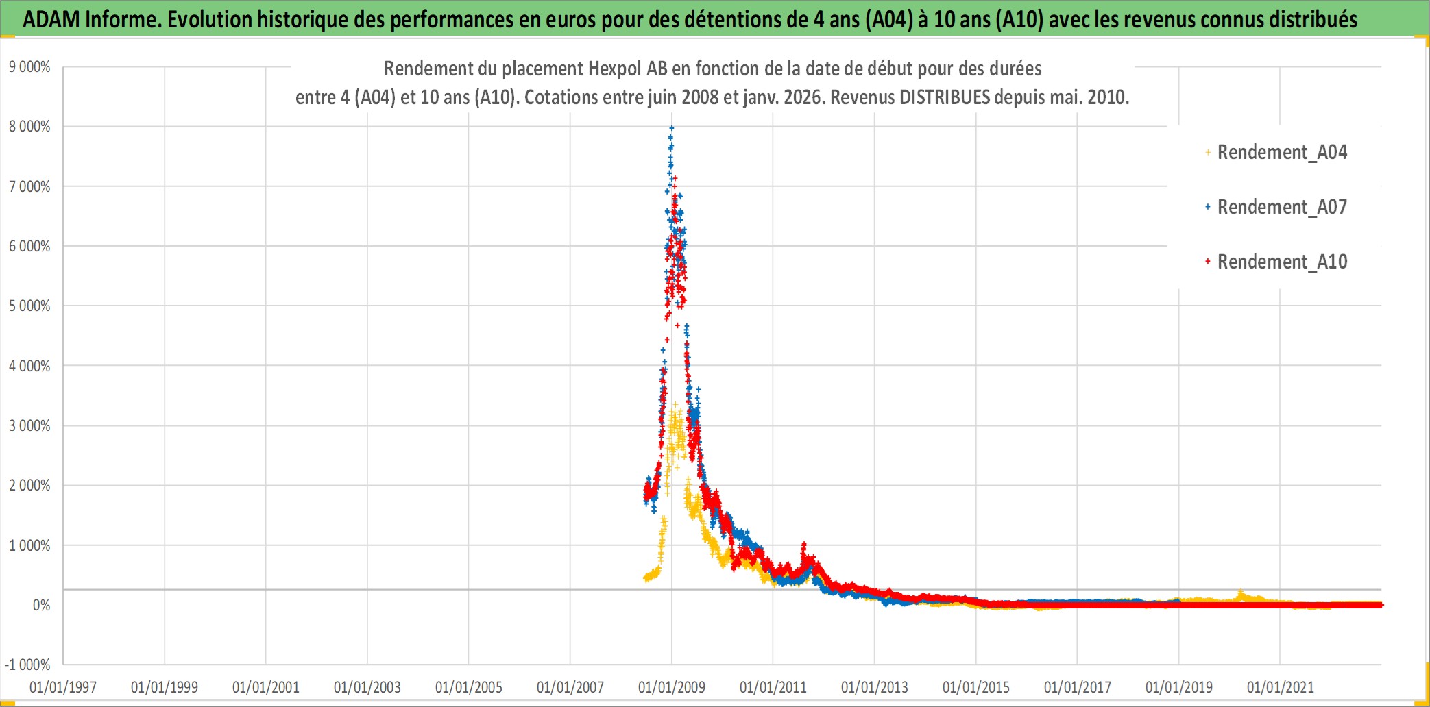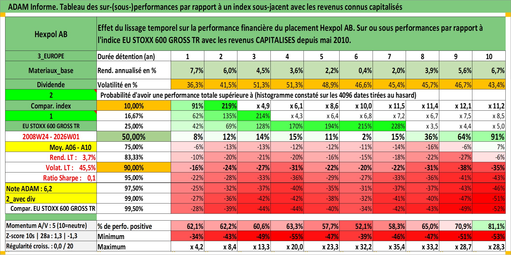 Site dédié aux investisseursPage dédiée sur site financeAnalyse des valorisations hebdomadaires de l'action Hexpol AB. Cet actif est cote en SEK. Les valorisations sont en contrevaleur EURO et couvrent les semaines 2008W24 a 2026W01. Les revenus de cet actif financier sont pris en compte depuis la semaine 2010W19. La note ESG de cet actif n'est pas connue.
