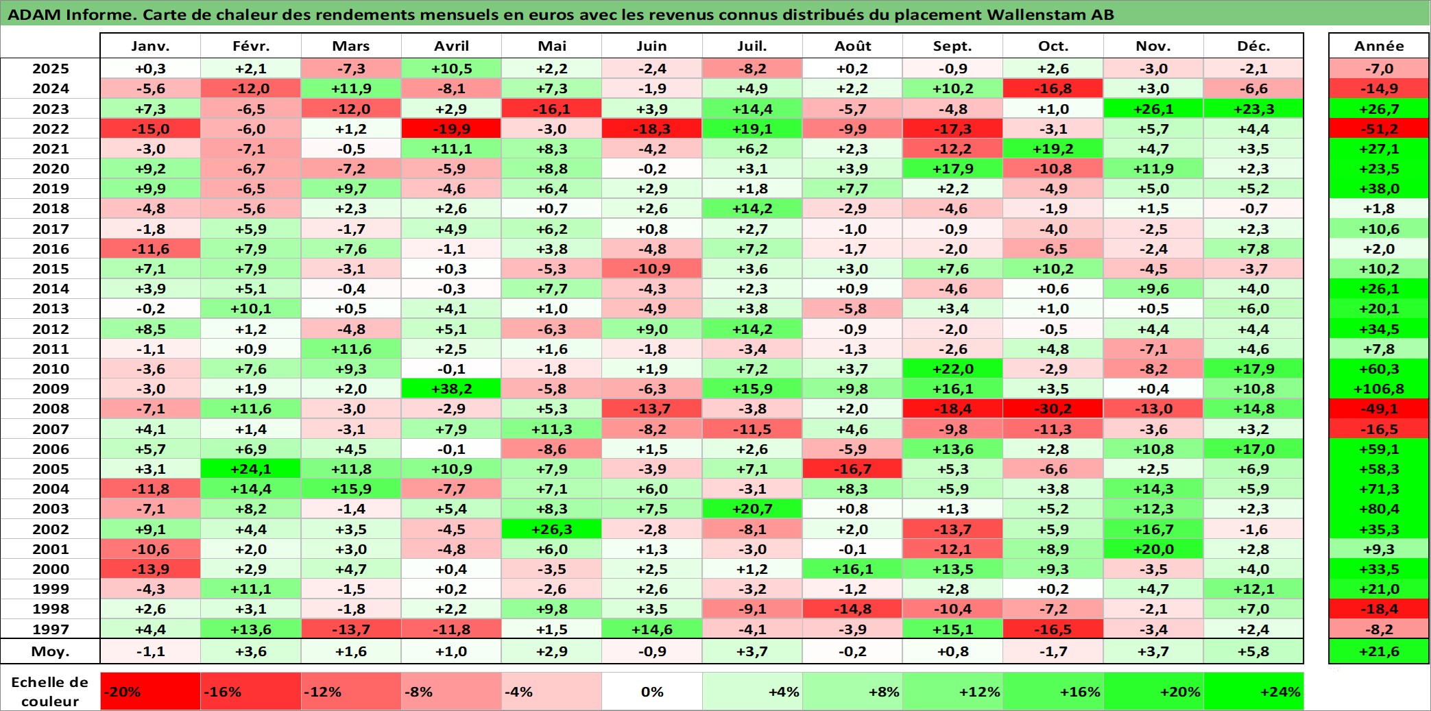 Site dédié aux investisseursPage dédiée sur site financeAnalyse des valorisations hebdomadaires de l'action Wallenstam AB. Cet actif est cote en SEK. Les valorisations sont en contrevaleur EURO et couvrent les semaines 1997W01 a 2026W01. Les revenus de cet actif financier sont pris en compte depuis la semaine 1997W20. La note ESG de cet actif n'est pas connue.