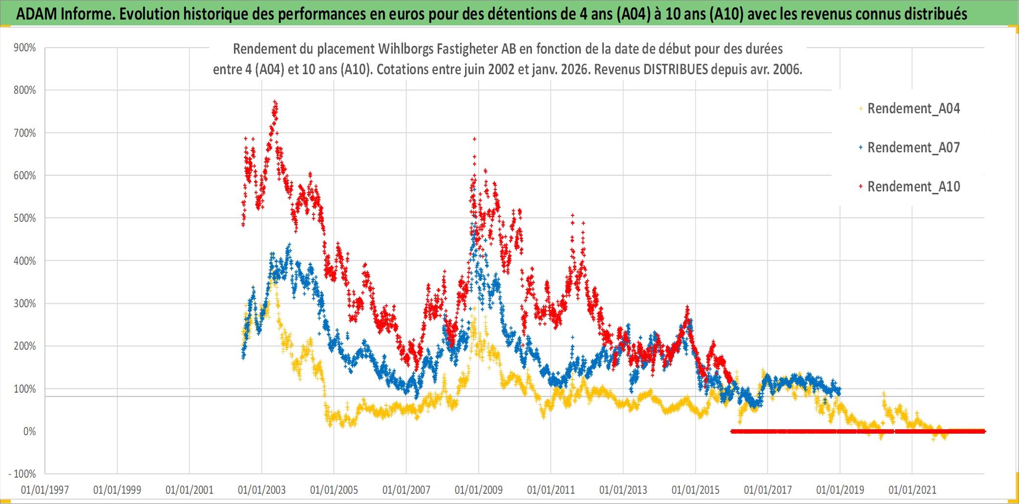 Site dédié aux investisseursPage dédiée sur site financeAnalyse des valorisations hebdomadaires de l'action Wihlborgs Fastigheter AB. Cet actif est cote en SEK. Les valorisations sont en contrevaleur EURO et couvrent les semaines 2002W24 a 2026W01. Les revenus de cet actif financier sont pris en compte depuis la semaine 2006W17. La note ESG de cet actif n'est pas connue.