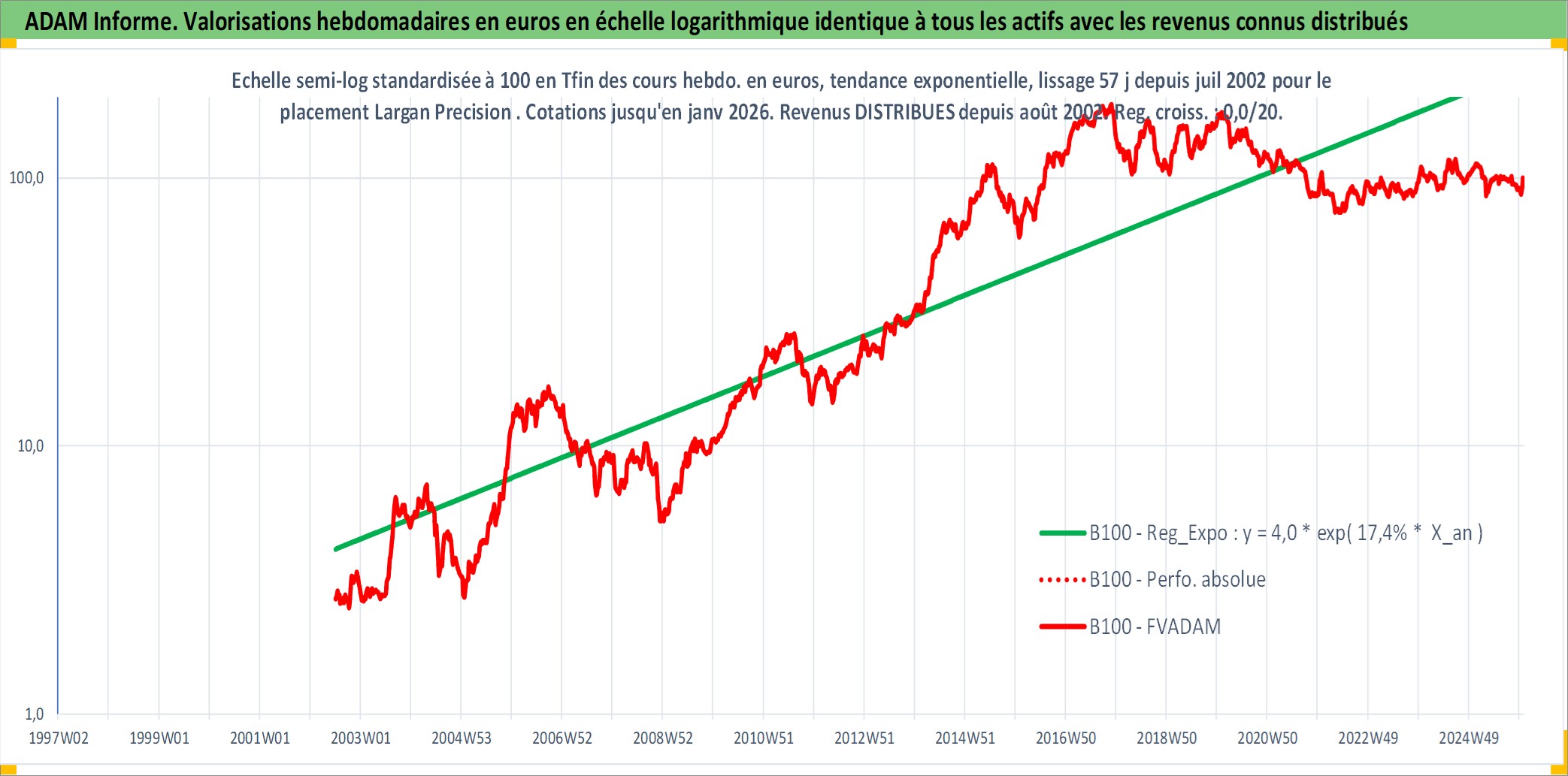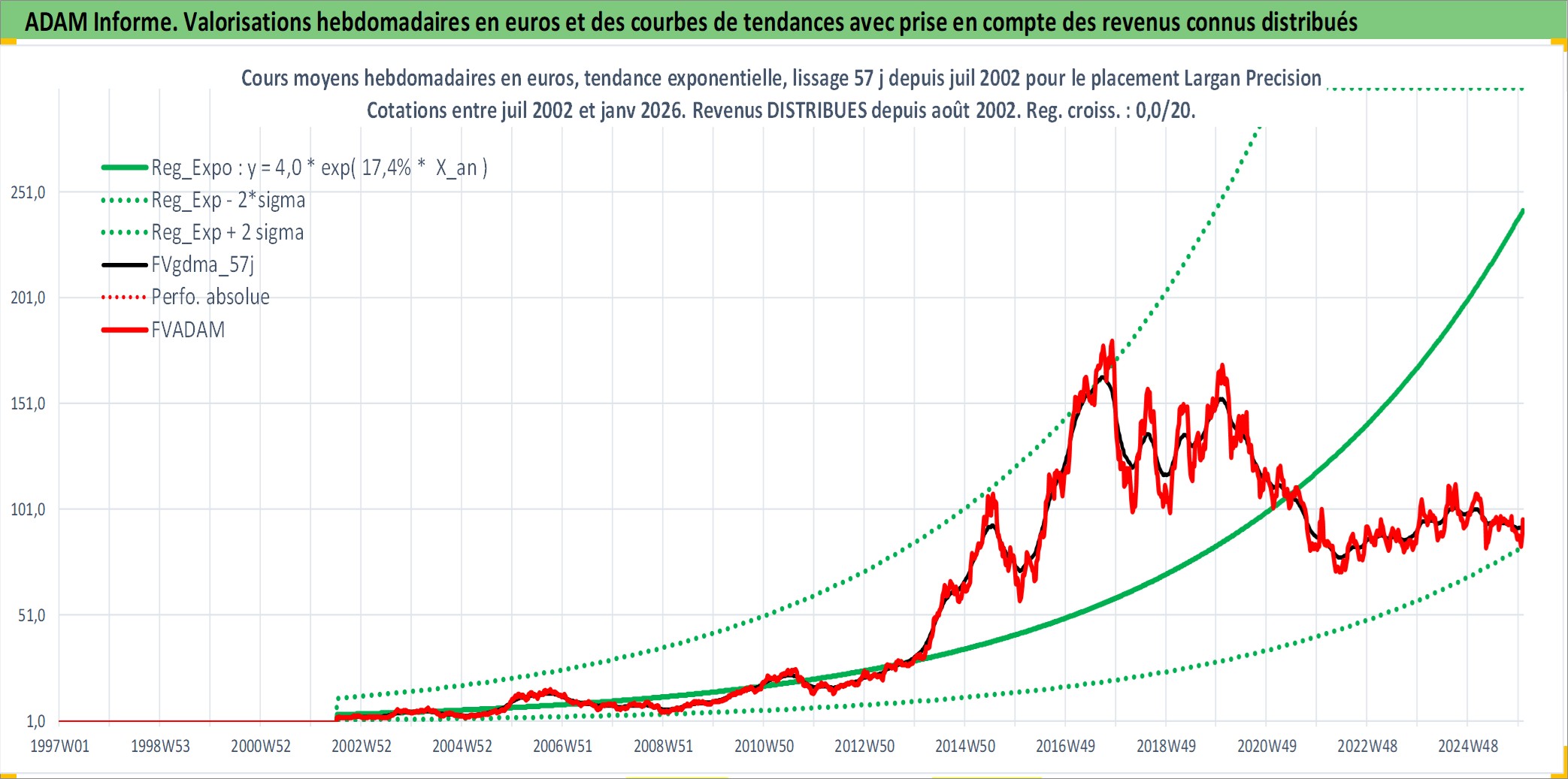 Site dédié aux investisseursPage dédiée sur site financeAnalyse des valorisations hebdomadaires de l'action Largan Precision . Cet actif est cote en TWD. Les valorisations sont en contrevaleur EURO et couvrent les semaines 2002W27 a 2026W01. Les revenus de cet actif financier sont pris en compte depuis la semaine 2002W35. La note globale ESG de cet actif est estimee a 10.0 (apres rebasage entre 0 et 20).