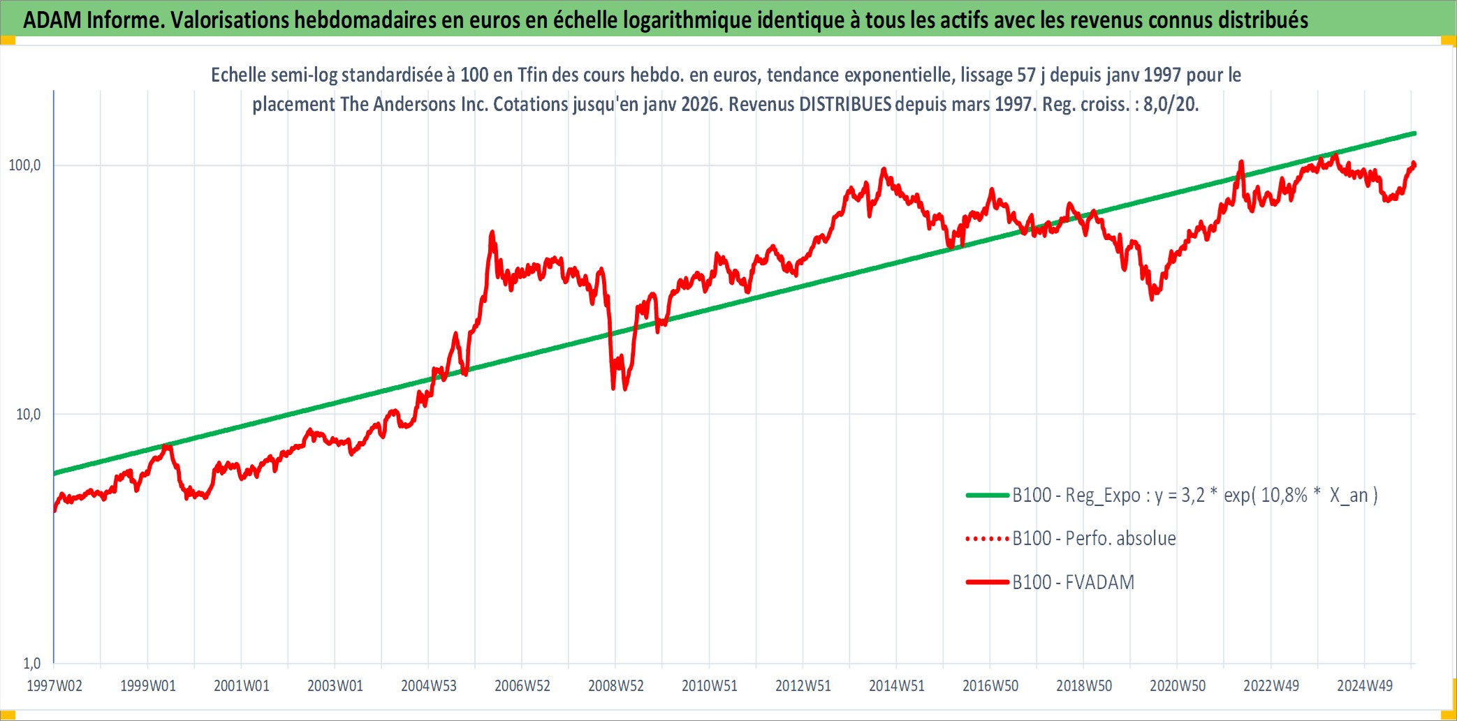 Site dédié aux investisseursPage dédiée sur site financeAnalyse des valorisations hebdomadaires de l'action The Andersons Inc. Cet actif est cote en USD. Les valorisations sont en contrevaleur EURO et couvrent les semaines 1997W01 a 2026W01. Les revenus de cet actif financier sont pris en compte depuis la semaine 1997W13. La note ESG de cet actif n'est pas connue.