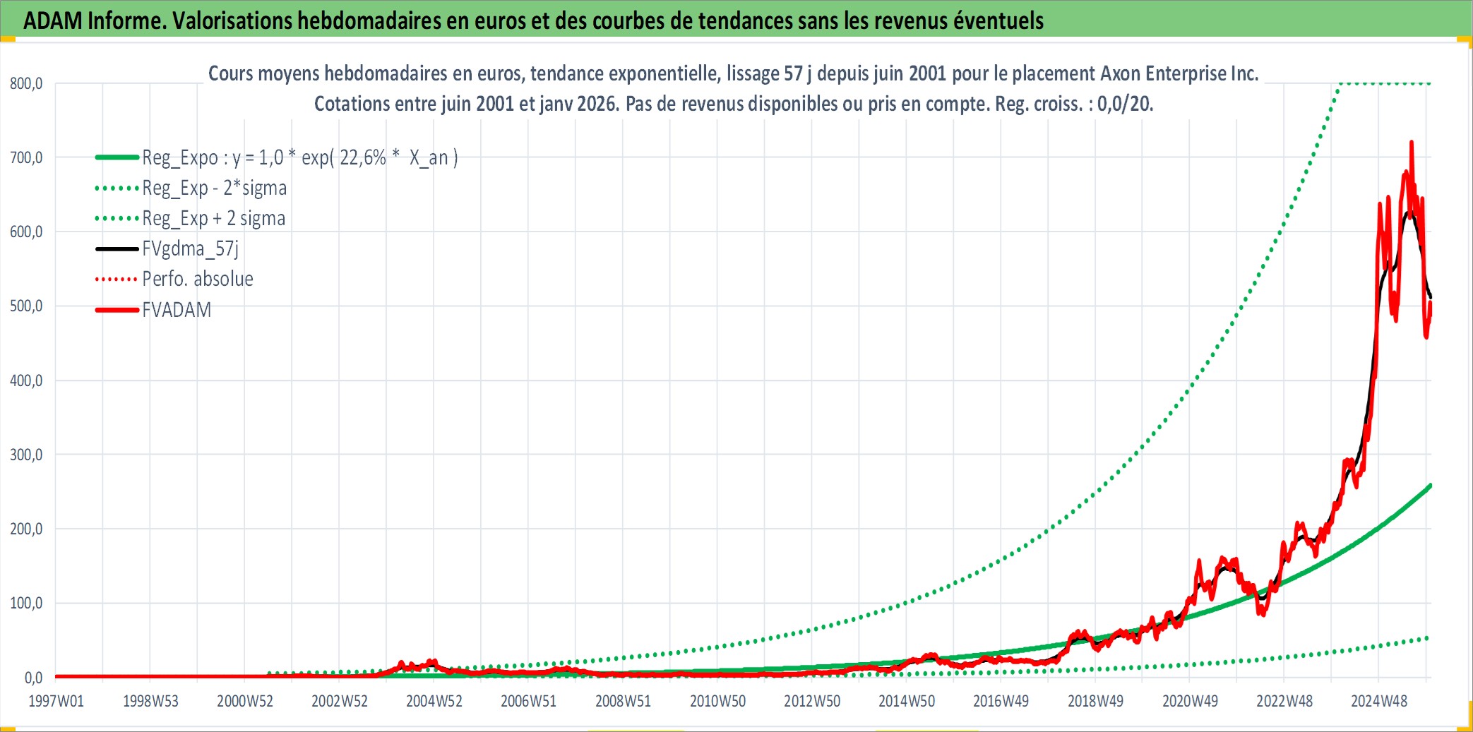 Site dédié aux investisseursPage dédiée sur site financeAnalyse des valorisations hebdomadaires de l'action Axon Enterprise Inc.. Cet actif est cote en USD. Les valorisations sont en contrevaleur EURO et couvrent les semaines 2001W25 a 2026W01. Les revenus de cet actif financier ne sont pas connus car non existants ou non disponibles sur le site Yahoo Finance. La note ESG de cet actif n'est pas connue.