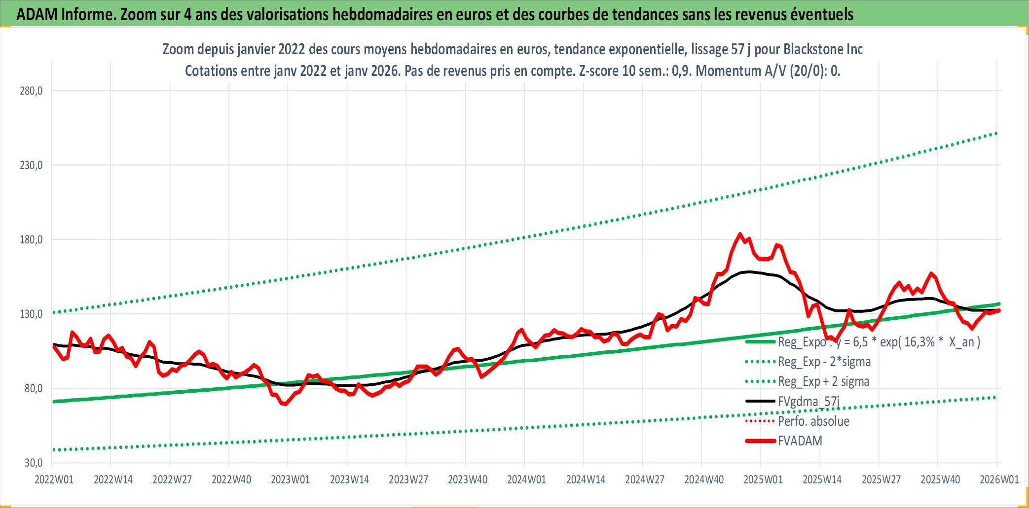 Site dédié aux investisseursPage dédiée sur site financeAnalyse des valorisations hebdomadaires de l'action Blackstone Inc. Cet actif est cote en USD. Les valorisations sont en contrevaleur EURO et couvrent les semaines 2007W25 a 2026W01. Les revenus de cet actif financier sont pris en compte depuis la semaine 2007W48. La note globale ESG de cet actif est estimee a 8.0 (apres rebasage entre 0 et 20).