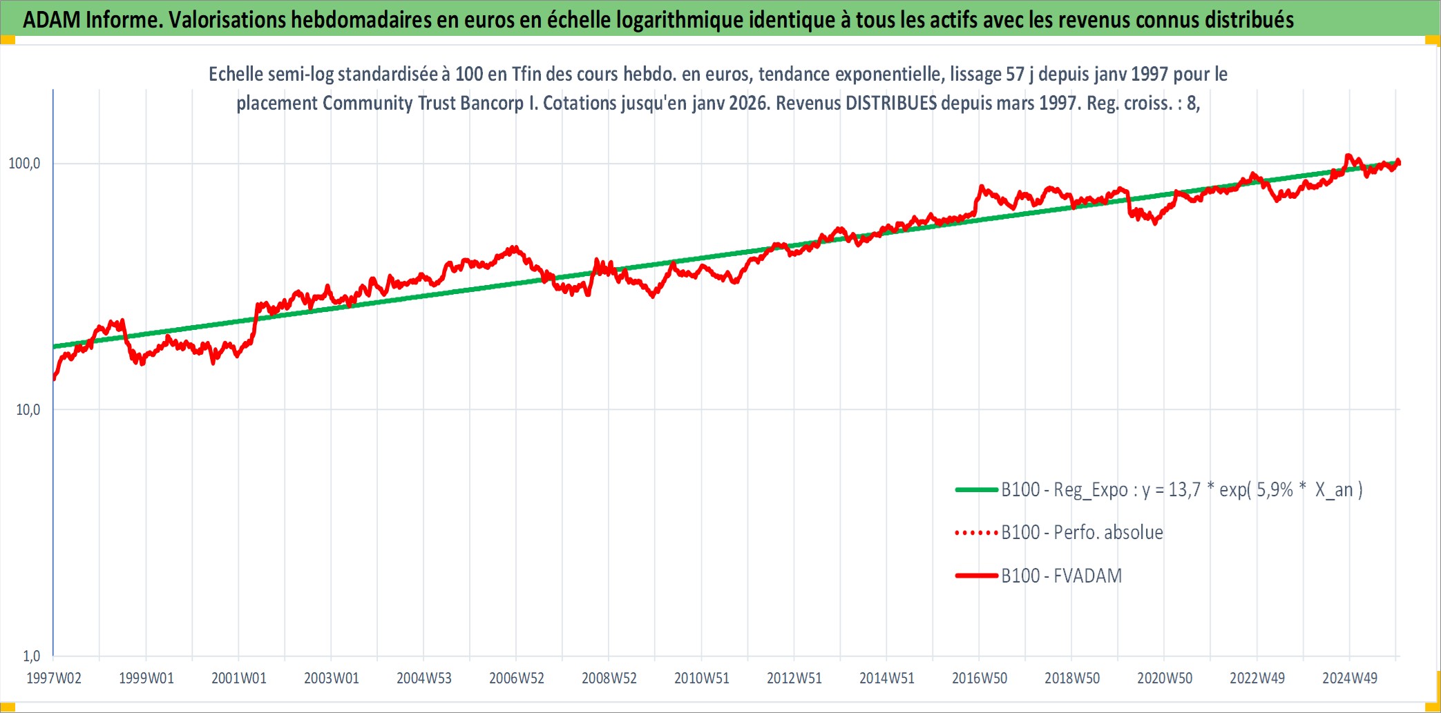 Site dédié aux investisseursPage dédiée sur site financeAnalyse des valorisations hebdomadaires de l'action Community Trust Bancorp Inc. Cet actif est cote en USD. Les valorisations sont en contrevaleur EURO et couvrent les semaines 1997W01 a 2026W01. Les revenus de cet actif financier sont pris en compte depuis la semaine 1997W11. La note ESG de cet actif n'est pas connue.