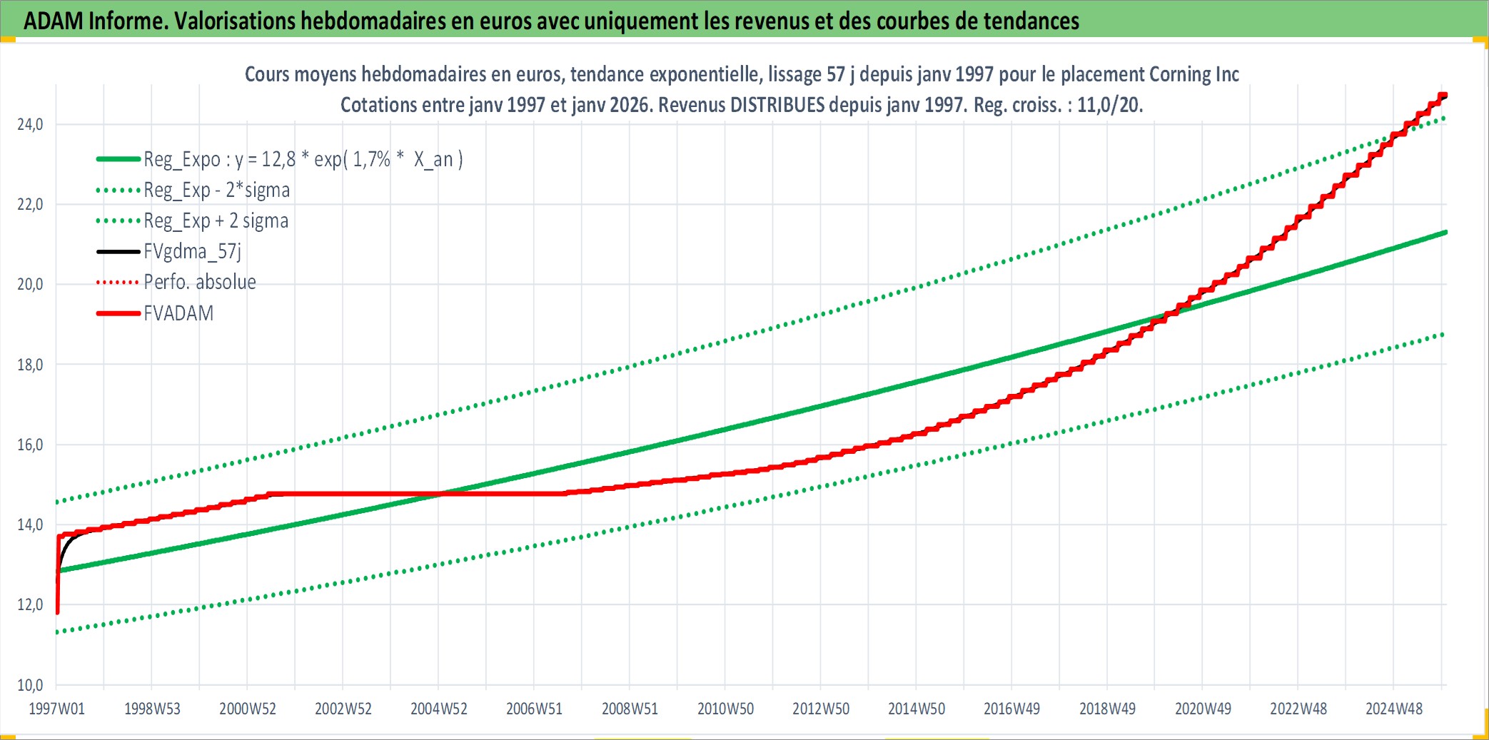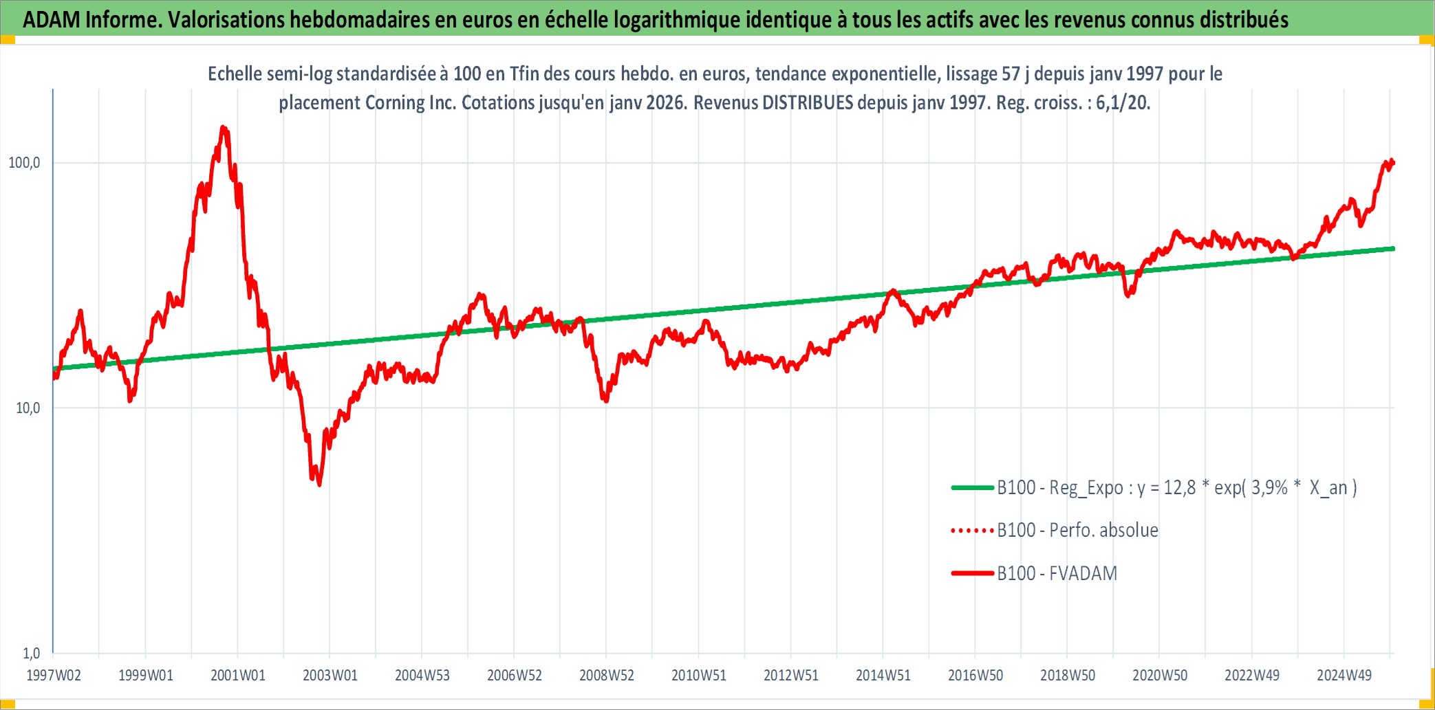 Site dédié aux investisseursPage dédiée sur site financeAnalyse des valorisations hebdomadaires de l'action Corning Inc. Cet actif est cote en USD. Les valorisations sont en contrevaleur EURO et couvrent les semaines 1997W01 a 2026W01. Les revenus de cet actif financier sont pris en compte depuis la semaine 1997W03. La note globale ESG de cet actif est estimee a 11.0 (apres rebasage entre 0 et 20).