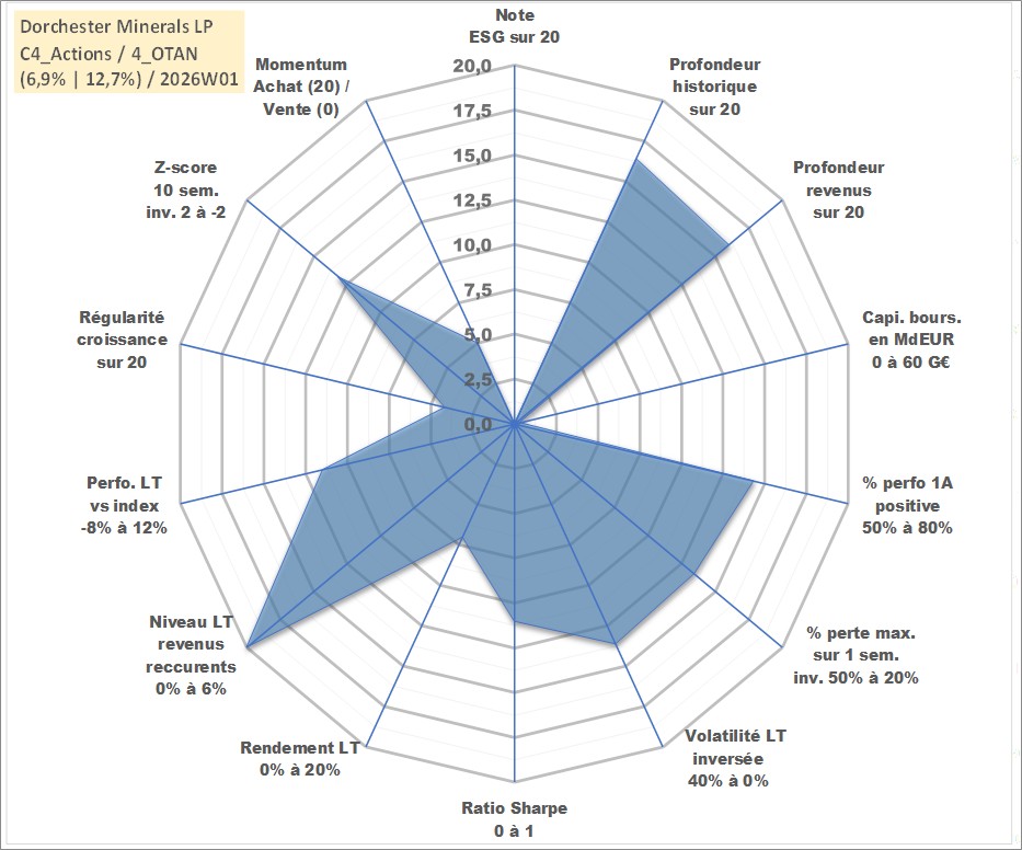 Site dédié aux investisseursPage dédiée sur site financeAnalyse des valorisations hebdomadaires de l'action Dorchester Minerals LP. Cet actif est cote en USD. Les valorisations sont en contrevaleur EURO et couvrent les semaines 2003W06 a 2026W01. Les revenus de cet actif financier sont pris en compte depuis la semaine 2003W17. La note ESG de cet actif n'est pas connue.