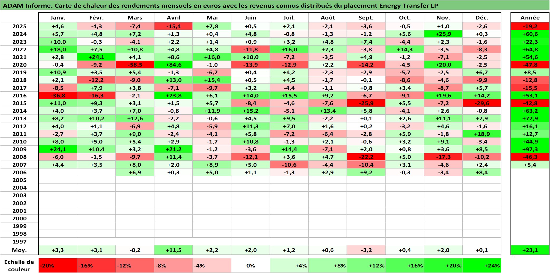 Site dédié aux investisseursPage dédiée sur site financeAnalyse des valorisations hebdomadaires de l'action Energy Transfer LP. Cet actif est cote en USD. Les valorisations sont en contrevaleur EURO et couvrent les semaines 2006W05 a 2026W01. Les revenus de cet actif financier sont pris en compte depuis la semaine 2006W13. La note ESG de cet actif n'est pas connue.