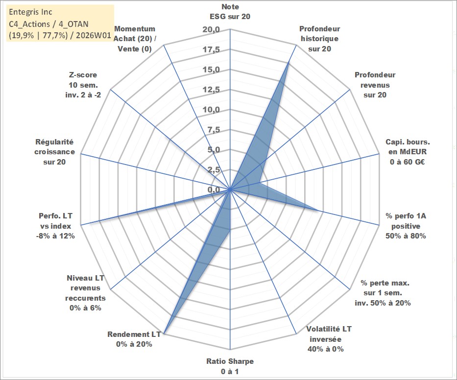 Site dédié aux investisseursPage dédiée sur site financeAnalyse des valorisations hebdomadaires de l'action Entegris Inc. Cet actif est cote en USD. Les valorisations sont en contrevaleur EURO et couvrent les semaines 2000W28 a 2026W01. Les revenus de cet actif financier sont pris en compte depuis la semaine 2017W44. La note ESG de cet actif n'est pas connue.