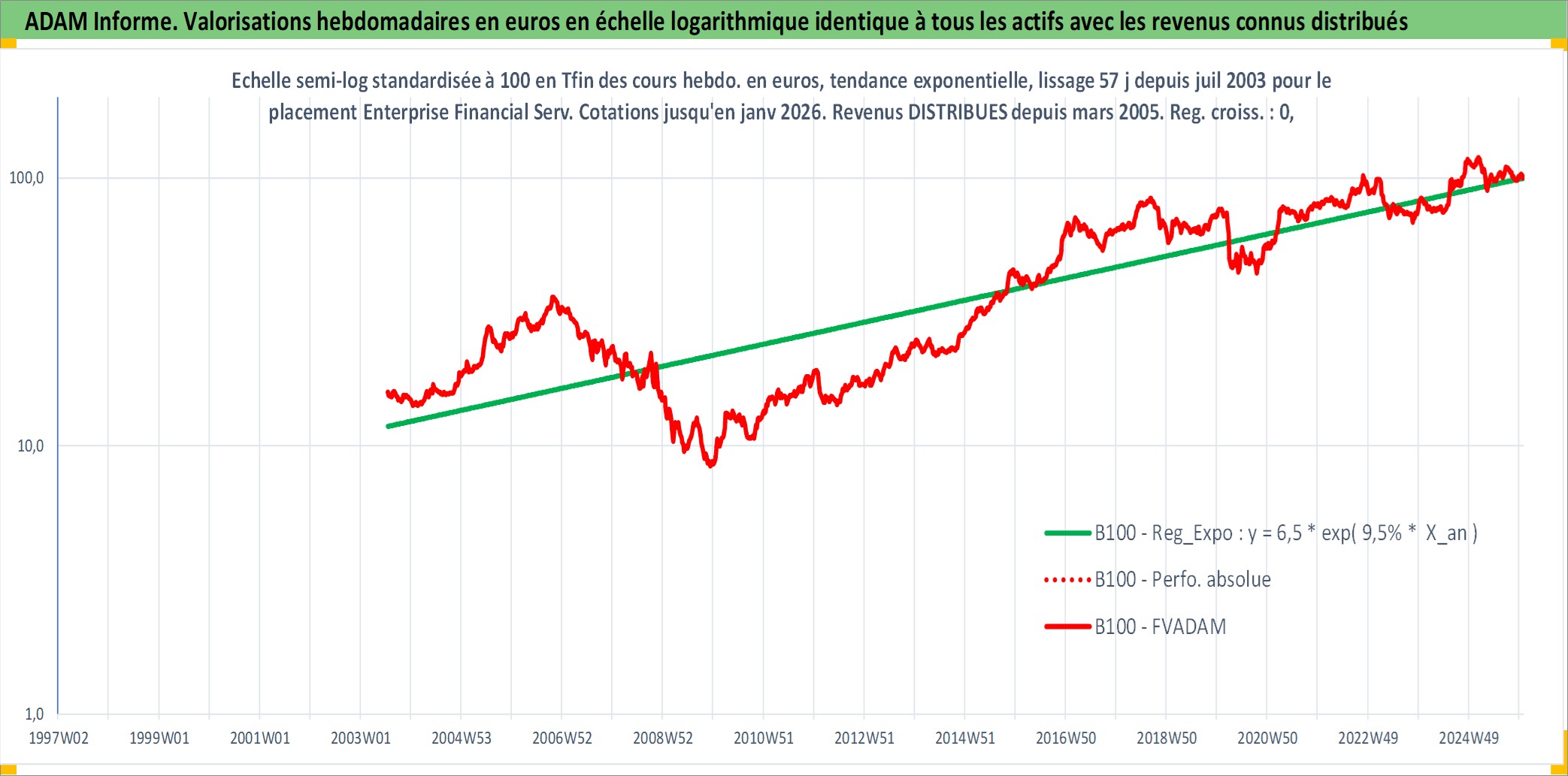 Site dédié aux investisseursPage dédiée sur site financeAnalyse des valorisations hebdomadaires de l'action Enterprise Financial Services Corp. Cet actif est cote en USD. Les valorisations sont en contrevaleur EURO et couvrent les semaines 2003W29 a 2026W01. Les revenus de cet actif financier sont pris en compte depuis la semaine 2005W11. La note ESG de cet actif n'est pas connue.