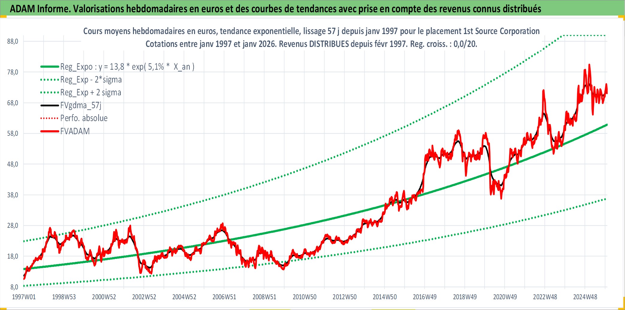Site dédié aux investisseursPage dédiée sur site financeAnalyse des valorisations hebdomadaires de l'action 1st Source Corporation. Cet actif est cote en USD. Les valorisations sont en contrevaleur EURO et couvrent les semaines 1997W01 a 2026W01. Les revenus de cet actif financier sont pris en compte depuis la semaine 1997W06. La note ESG de cet actif n'est pas connue.