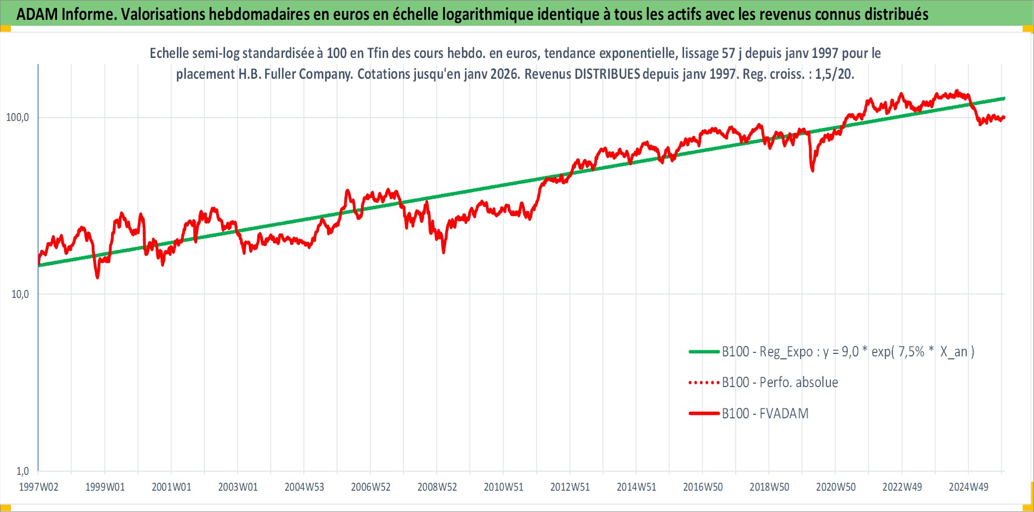 Site dédié aux investisseursPage dédiée sur site financeAnalyse des valorisations hebdomadaires de l'action H.B. Fuller Company. Cet actif est cote en USD. Les valorisations sont en contrevaleur EURO et couvrent les semaines 1997W01 a 2026W01. Les revenus de cet actif financier sont pris en compte depuis la semaine 1997W04. La note ESG de cet actif n'est pas connue.